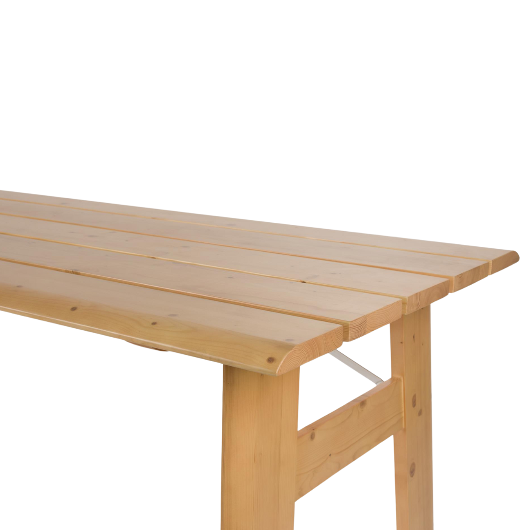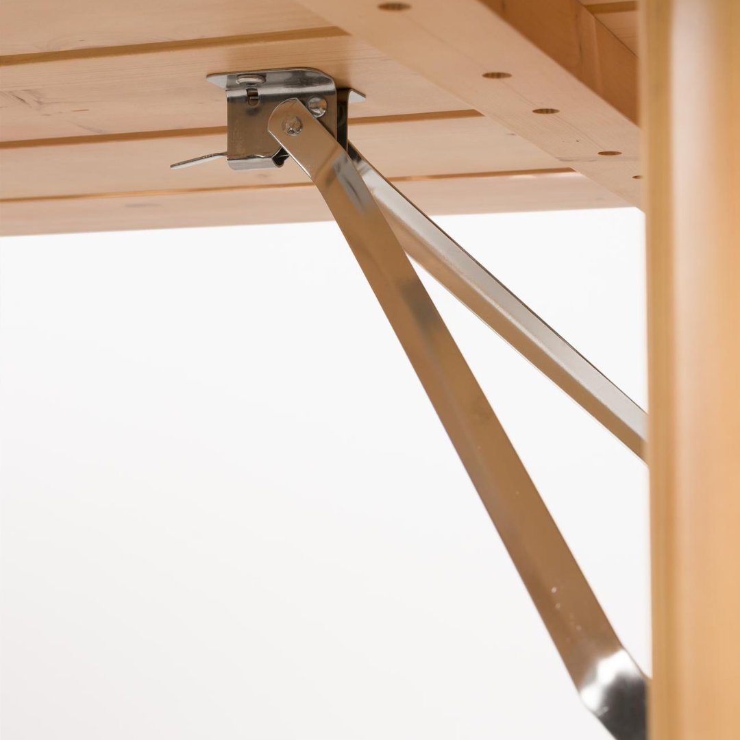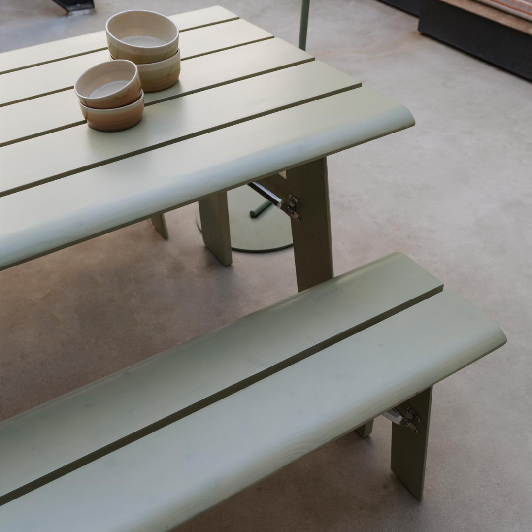 Az Avenue egy letisztult, minimalista stílusú, natúr vagy zsályazöld színű, fenyőfából készült összecsukható asztal, mely ideális méretű a kollekció padjához. Egyszerű és elegáns megjelenésének köszönhetően bármilyen kültéri környezetbe illeszkedik. Az anyaga miatt rendkívül tartós és hosszú élettartamú, így garantáltan sokáig szolgál majd. Összecsukható, így tárolása és használata rendkívül egyszerű. Kombináld az Avenue kollekció összecsukható padjával a teljes összkép érdekében. Szettben is megvásárolható.