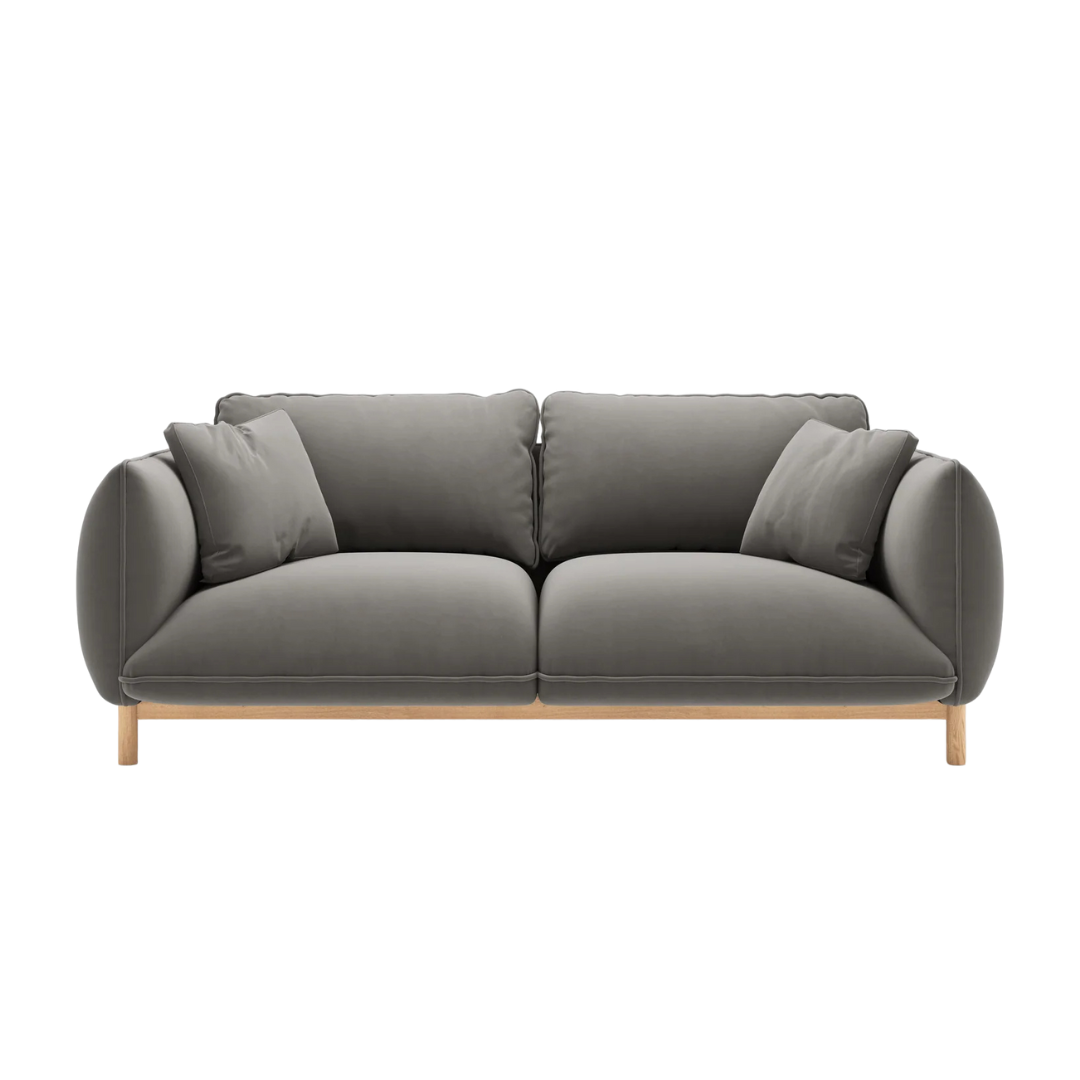A skandináv stílus ihlette Ada 2 személyes kanapé puha sziluettjét erős fa váz támasztja alá. Kompakt mérete miatt kis helyiségekbe is remekül illeszkedik. Ívelt forma, lekerekített karfákkal, amelyek zökkenőmentesen illeszkednek a háttámlához. A látható fa váz és a díszes díszítésű lábak természetes, kézműves megjelenést kölcsönöznek ennek a bútornak. Gondos odafigyeléssel és minőségre törekedve, megrendelésre gyártják Európában.