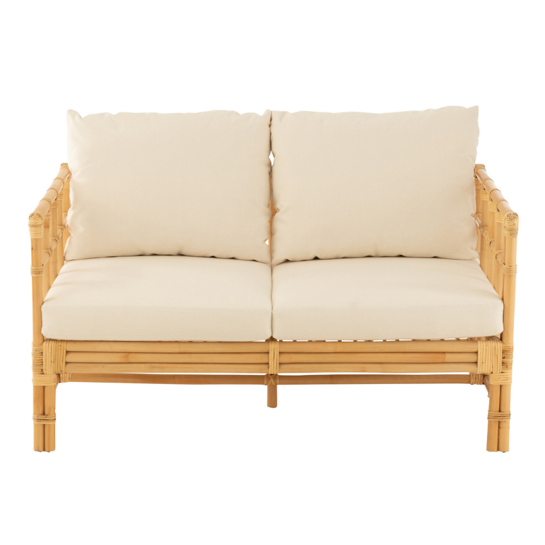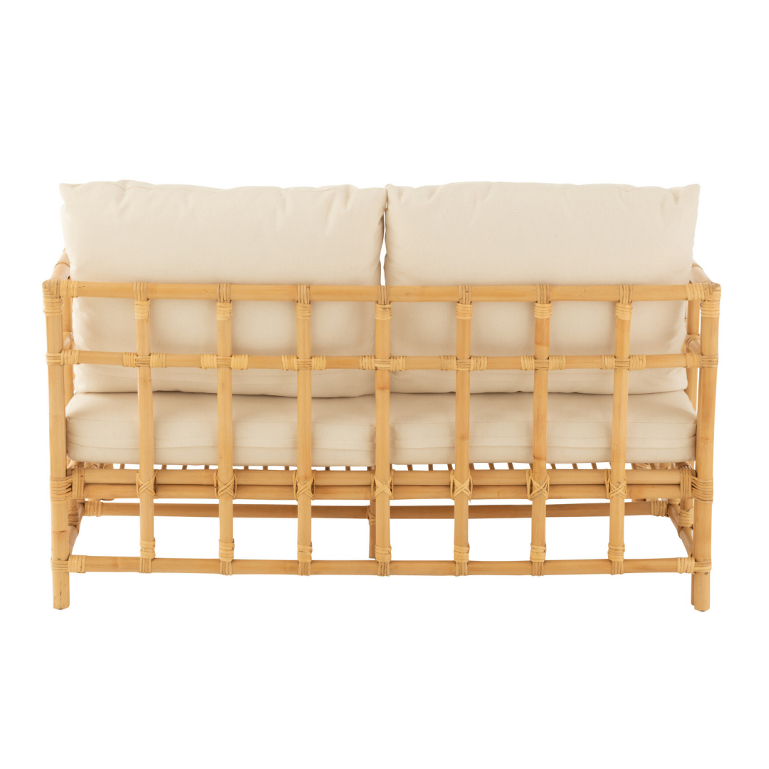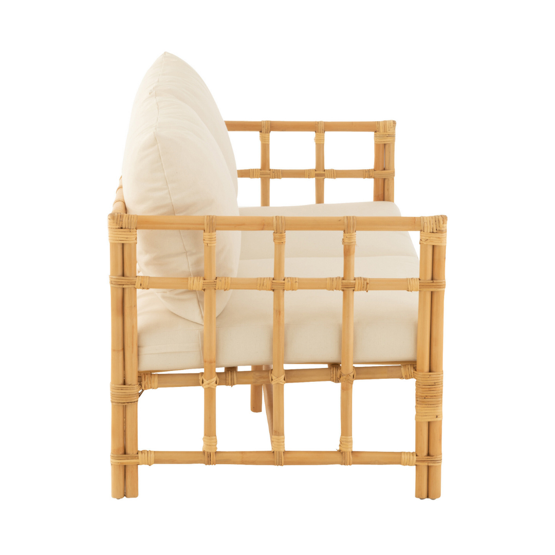 The Elise 2-seater sofa is an elegant and stylish piece of furniture that will be a perfect addition to any modern home. The frame of the product is made of premium quality, natural wood and rattan materials, which not only ensure durability, but also natural beauty. The square grid sides give the sofa a special character, while the soft and thick beige cushions provide comfortable use. The Elise is also available in armchair and 3-seater sofa versions.