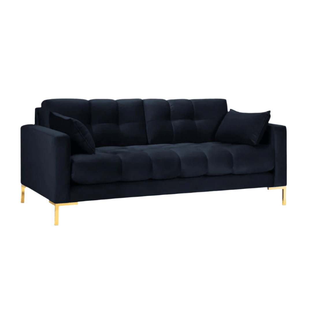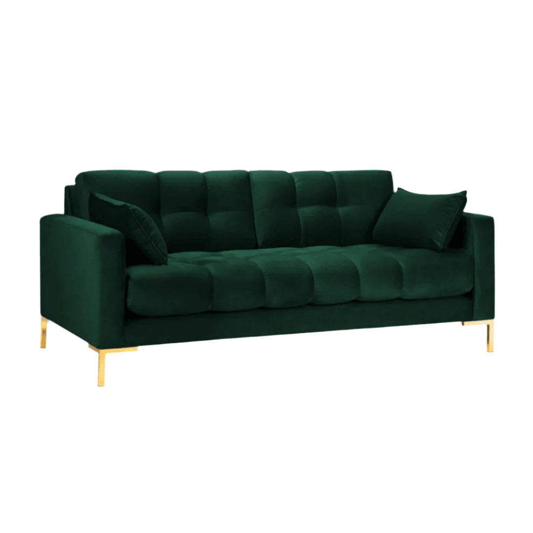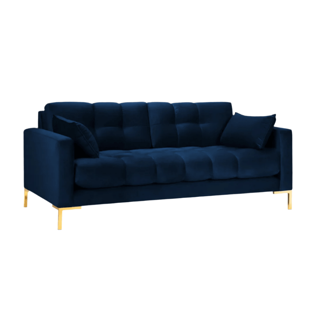 With its carefully quilted backrest and seat, the Mamaia 2-seater sofa will fill any interior with a unique, distinctive and positive energy. The side cushions with decorative trim provide even greater comfort and create a very stylish effect. The luxurious upholstery made of soft, velvet fabric and the geometric gold legs are a combination of modernity and elegance. The Mamaia models are extremely durable and solid, and they even look great when combined with other pieces in the collection.
