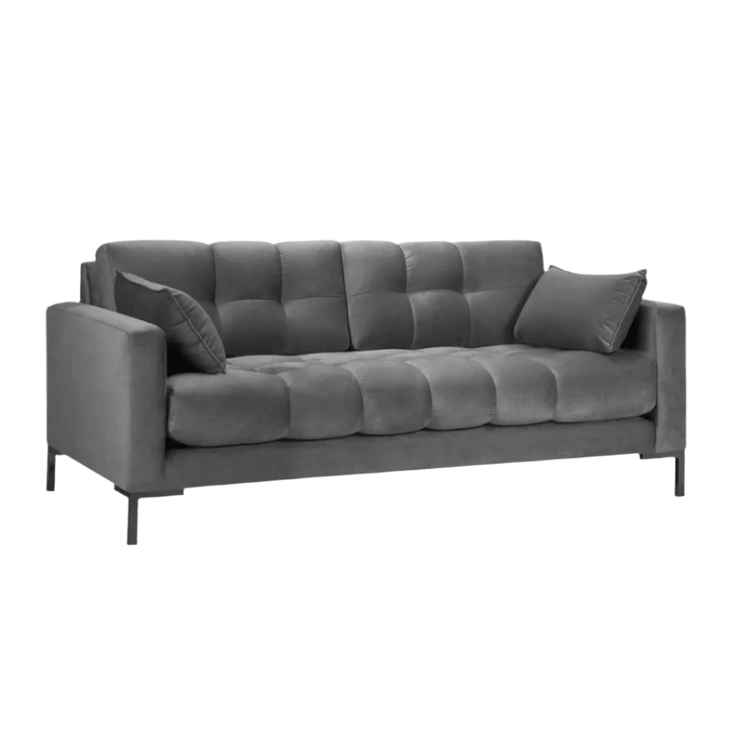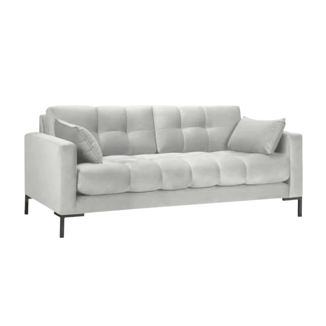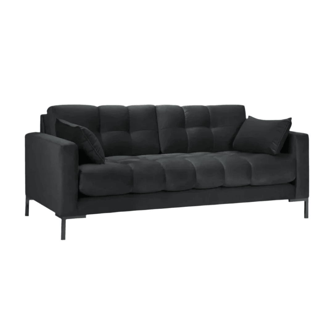 With its carefully quilted backrest and seat, the Mamaia 2-seater sofa will fill any interior with a unique, distinctive and positive energy. The side cushions with decorative trim provide even greater comfort and create a very stylish effect. The luxurious upholstery made of soft, velvet fabric and the geometric black metal legs are a combination of modernity and elegance. The Mamaia models are extremely durable and solid, and they even look great when combined with other pieces in the collection.