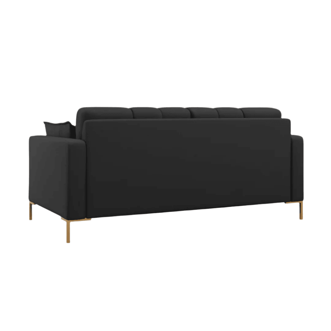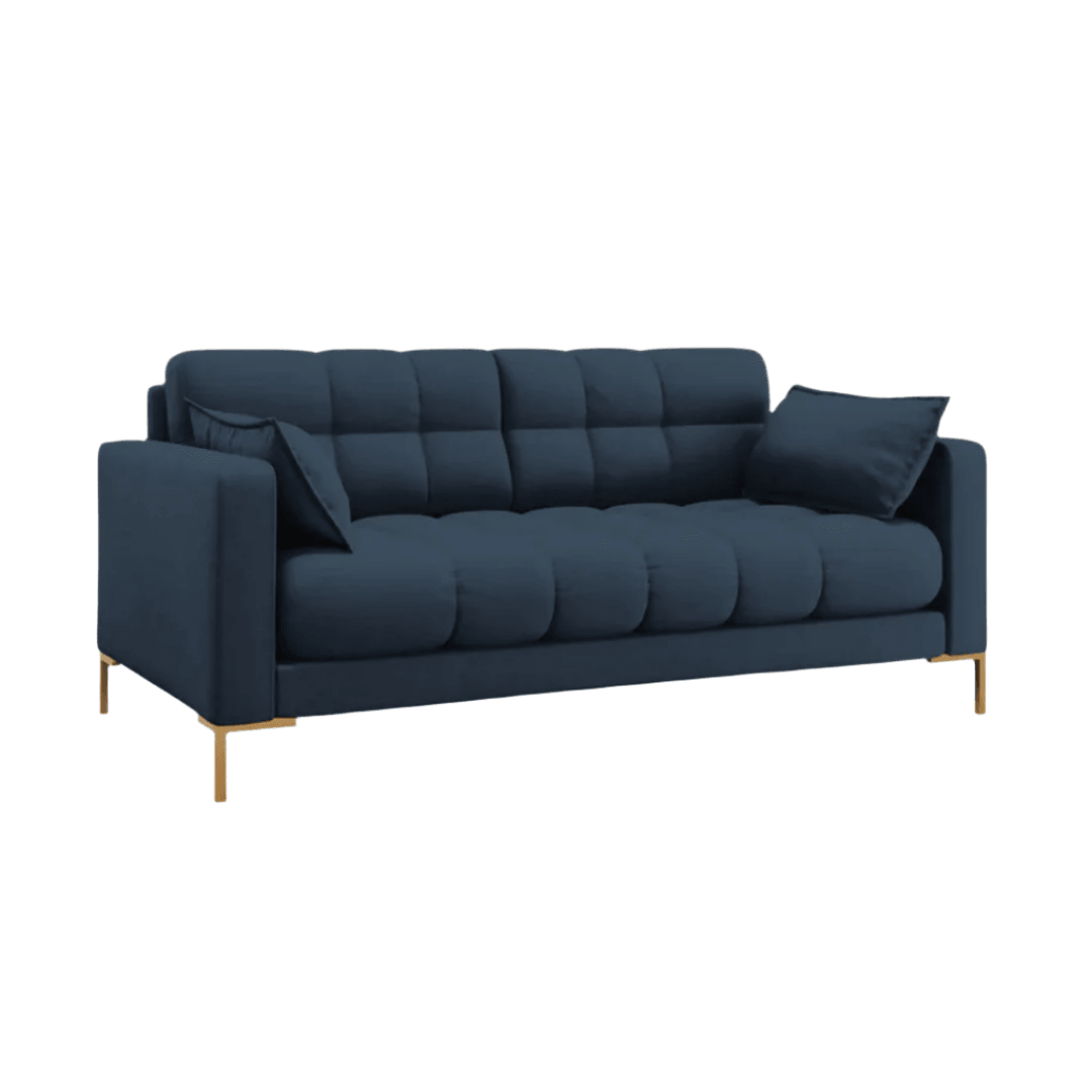 With its carefully quilted backrest and seat, the Mamaia sofa collection will fill any interior with unique, distinctive and positive energy, be it your home or office. The 2-seater design allows it to easily fit into smaller spaces. The side cushions with decorative trim provide even greater comfort and create a very stylish effect. The beautifully colored fabric upholstery and geometric gold-plated metal legs are a combination of modernity and elegance.