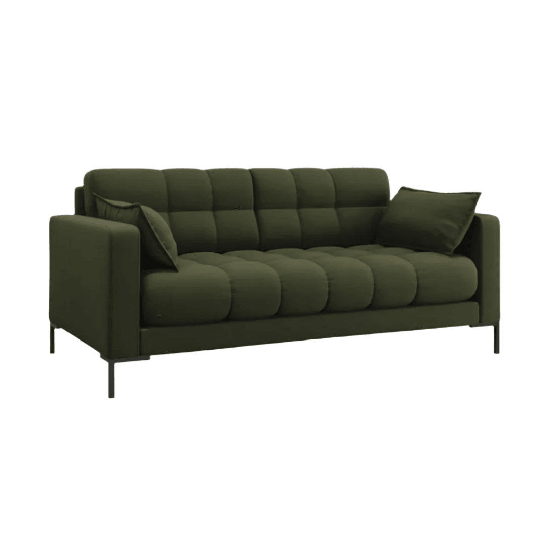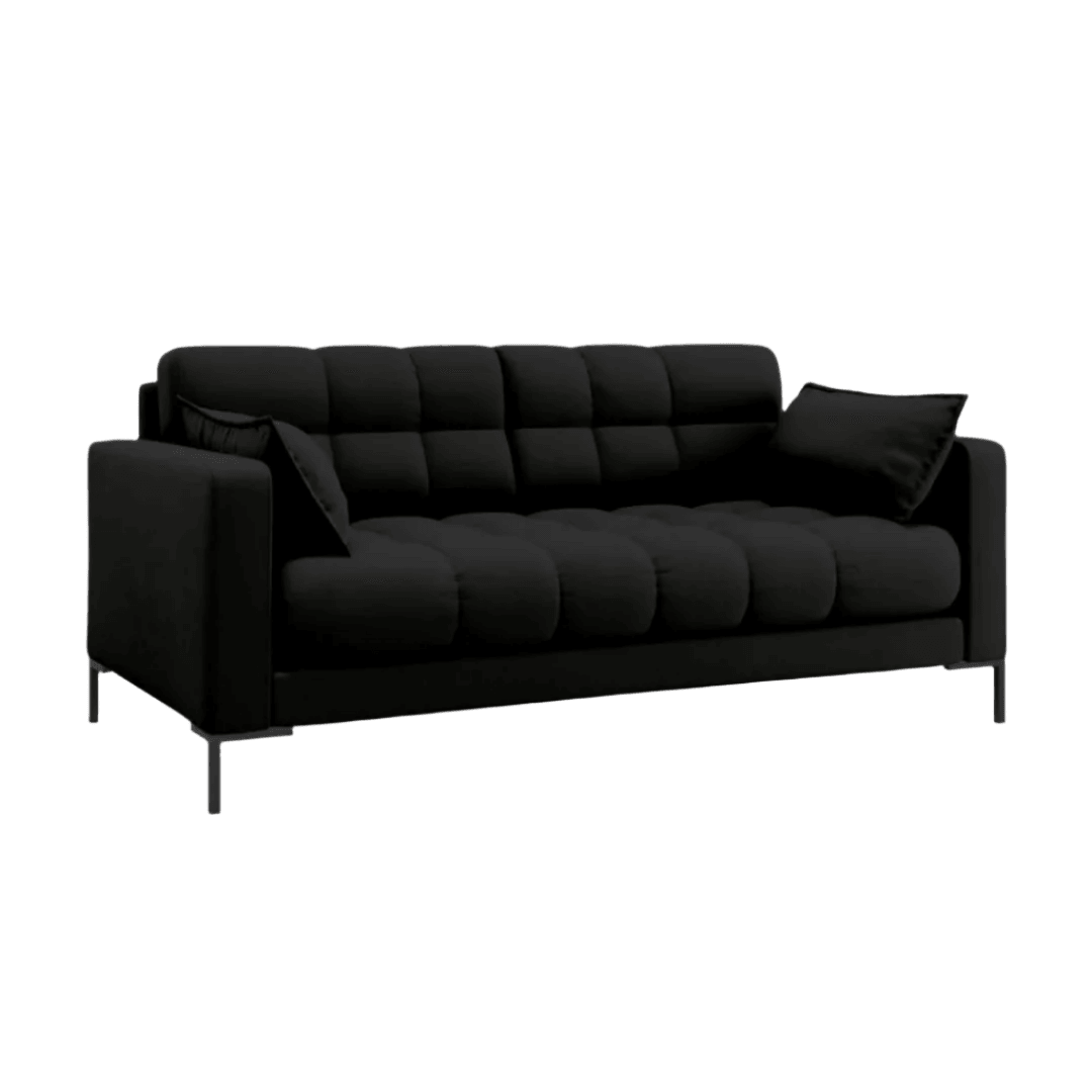 With its carefully quilted backrest and seat, the Mamaia sofa collection fills any interior with a unique, distinctive and dynamic energy. One look at it and you can't wait to lean back, or even better, spend time watching your favorite movie or reading a good book. The side cushions with decorative trim provide even more comfort and also create a very stylish effect. The beautifully colored fabric upholstery and the geometric black metal legs are a combination of modernity and elegance.