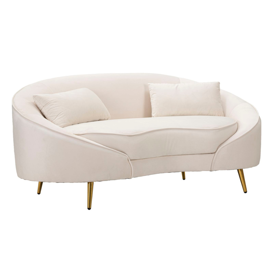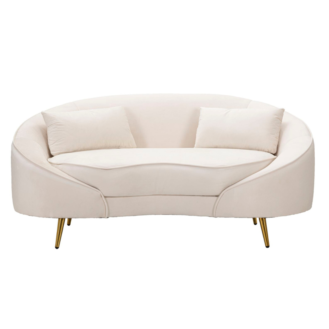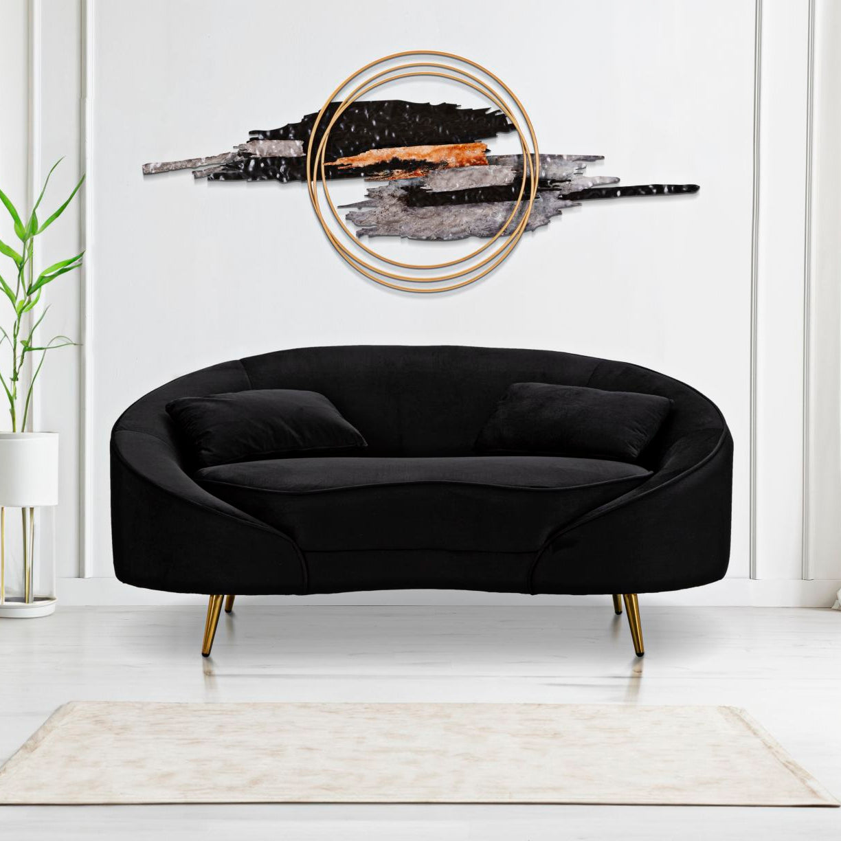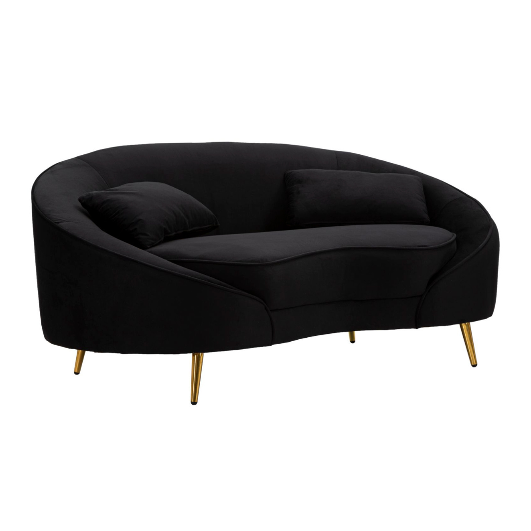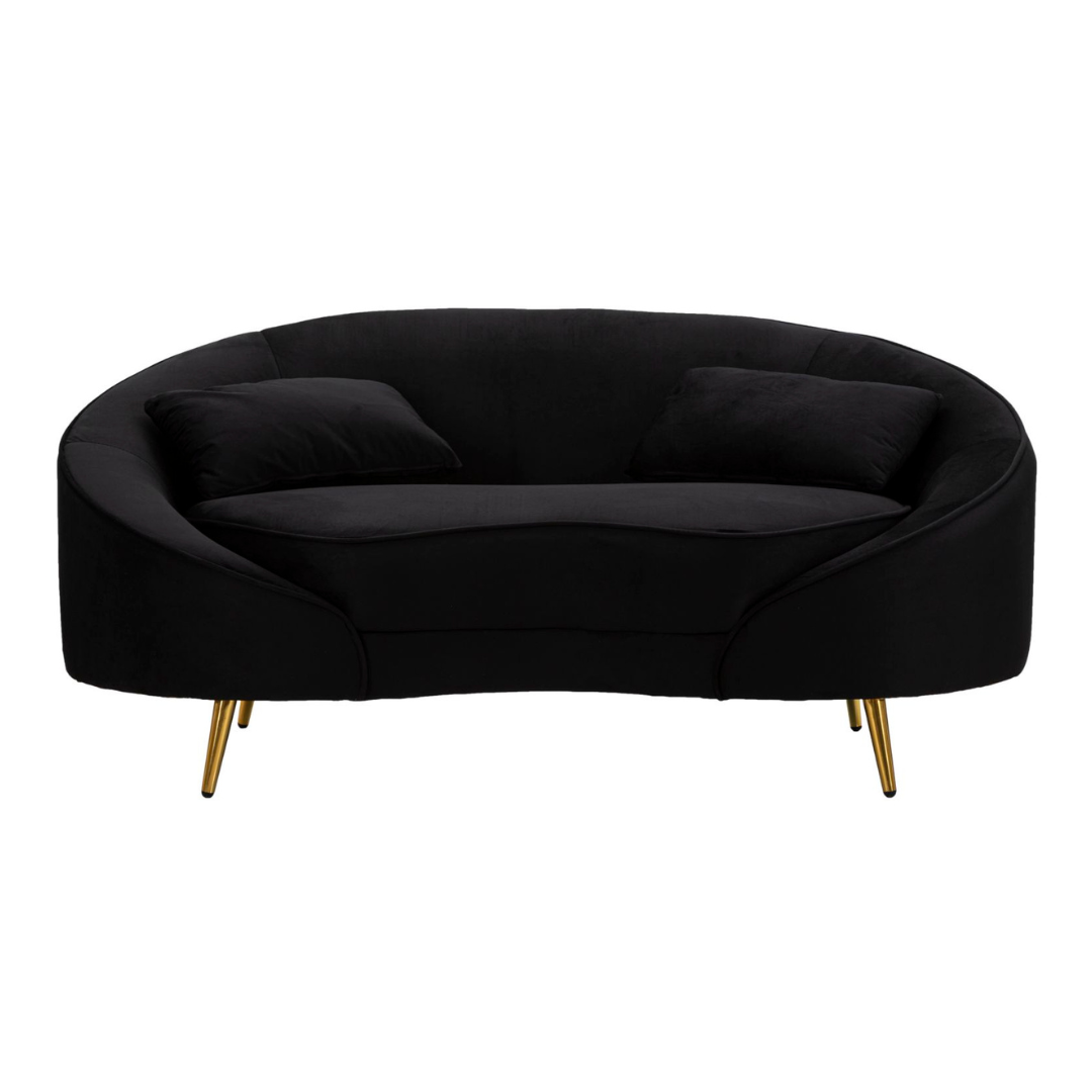 Oslo is a modern 2-seater sofa with a comfortable seating surface. Its white or black velvet upholstery provides a clean and aesthetic look, making it a perfect fit for any space. Its gold-colored metal legs perfectly complement its sophisticated silhouette.