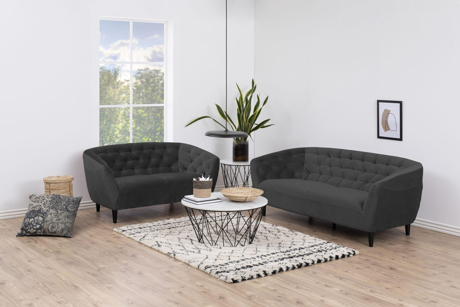 A Ria 2 személyes kanapé tele van stílusos jellemzőkkel, így bármely nappali dísze lehet. Texturált felülete gyengéd érzetet nyújt, míg a rugós szivacsok nagy kényelmet biztosítanak, fokozva a pihenés élményét. Ez a kanapé klasszikus esztétikát áraszt a gomb varrásoktól kezdve a kerek, elkeskenyedő fekete fa lábakig. A Ria kanapé háromféle színben érhető el, valamint fotel, és 3 személyes kivitelben is kapható.