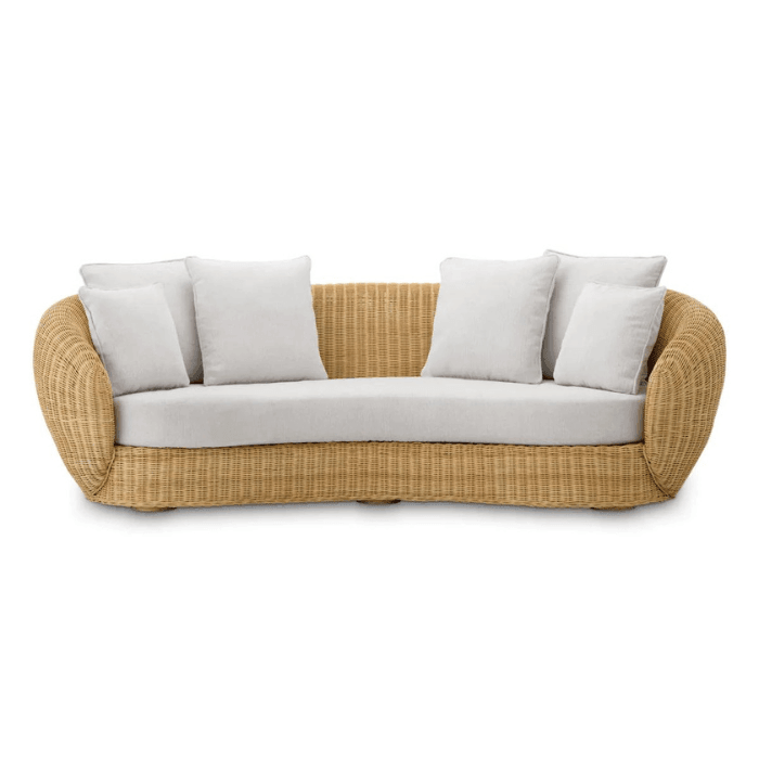 Fedezd fel az Eichholtz Rafael szövet kanapé eleganciáját. Ez a luxus kanapé finom kézműves kidolgozással készült, amely a természetes rattant és a sentier cream szövetet kombinálja, exkluzív megjelenést biztosítva. Tökéletes választás bármely nappaliba, ha egy elegáns, mégis természetes hatású darabot keresel. Időtlen dizájnjával, kifinomult részleteivel emeli enteriőröd színvonalát.