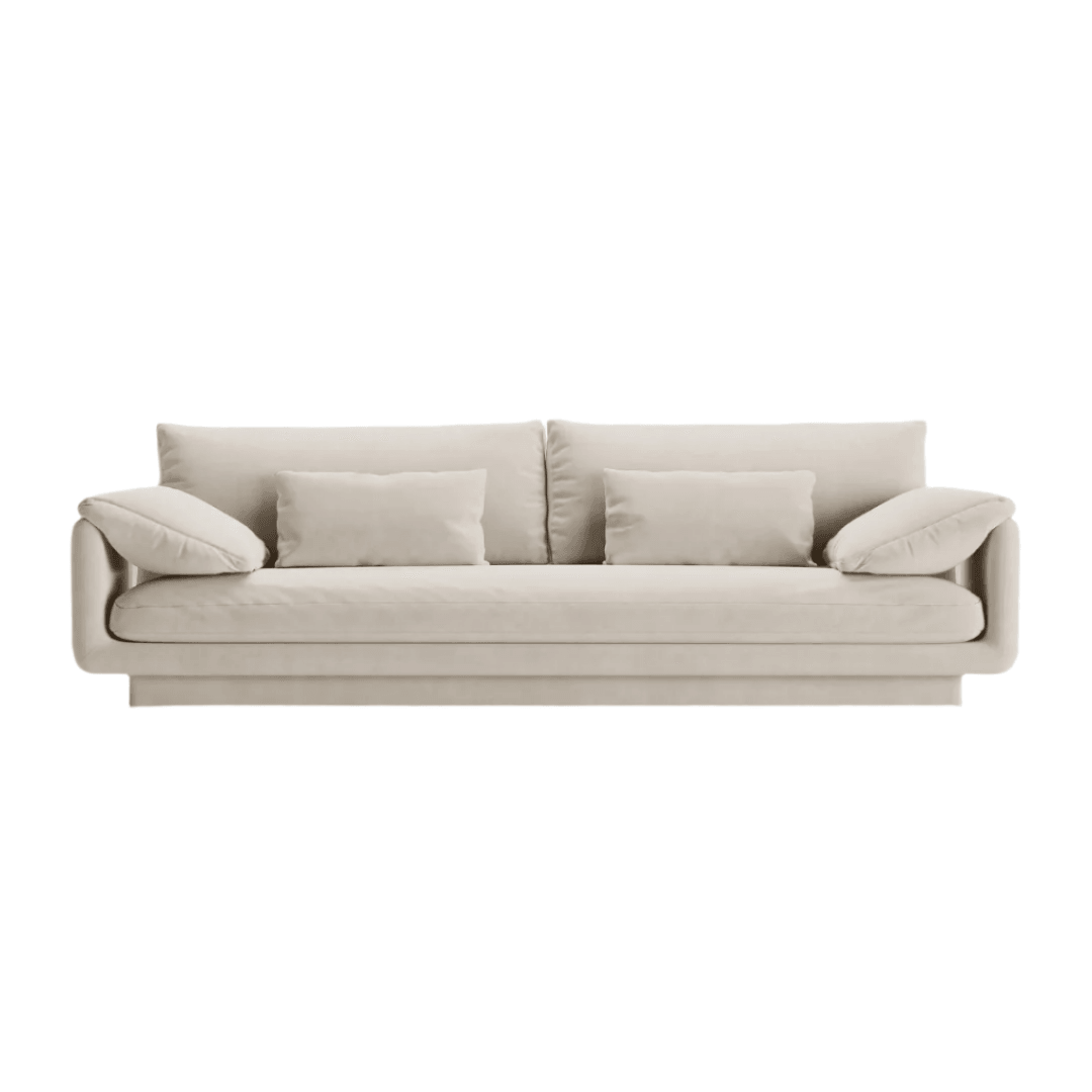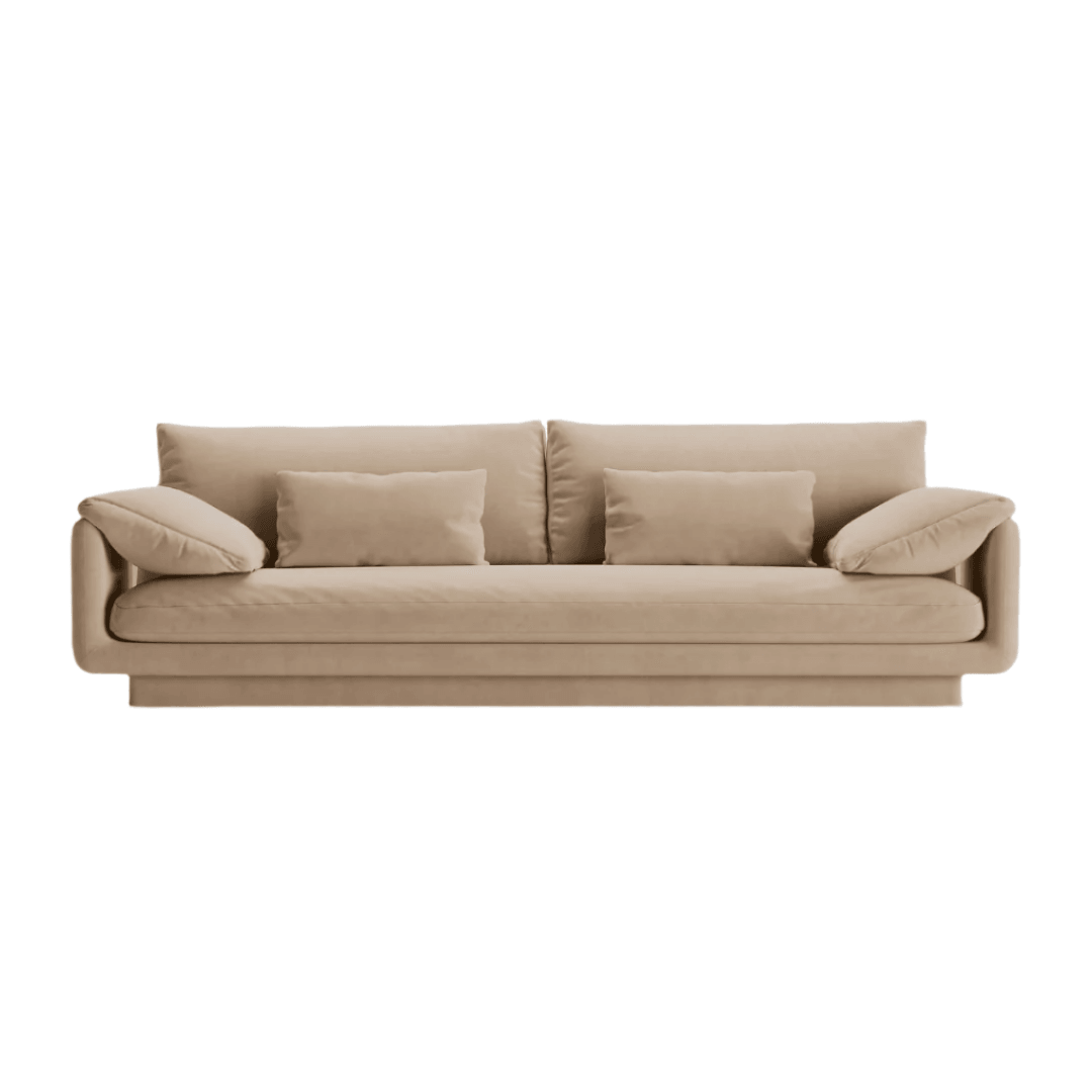 The Torino 4-seater sofa combines a classic silhouette with modern, light proportions. Its simple design is highlighted by innovative, movable armrests, while the high-quality workmanship and comfortable velvet upholstery make it a standout piece in your home. The wave springs and foam provide excellent support, while the movable, padded armrests can be tilted for greater comfort. The recessed base creates a floating effect, giving the sofa a unique look.