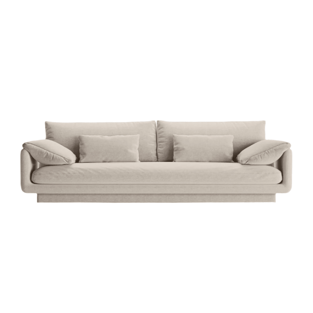 The Torino 4-seater sofa combines a classic silhouette with modern, light proportions. Its simple design is highlighted by innovative, movable armrests, while the high-quality workmanship and comfortable fabric upholstery make it a standout piece in your home. The wave springs and foam provide excellent support, while the movable, padded armrests can be tilted for greater comfort. The recessed base creates a floating effect, giving the sofa a unique look.