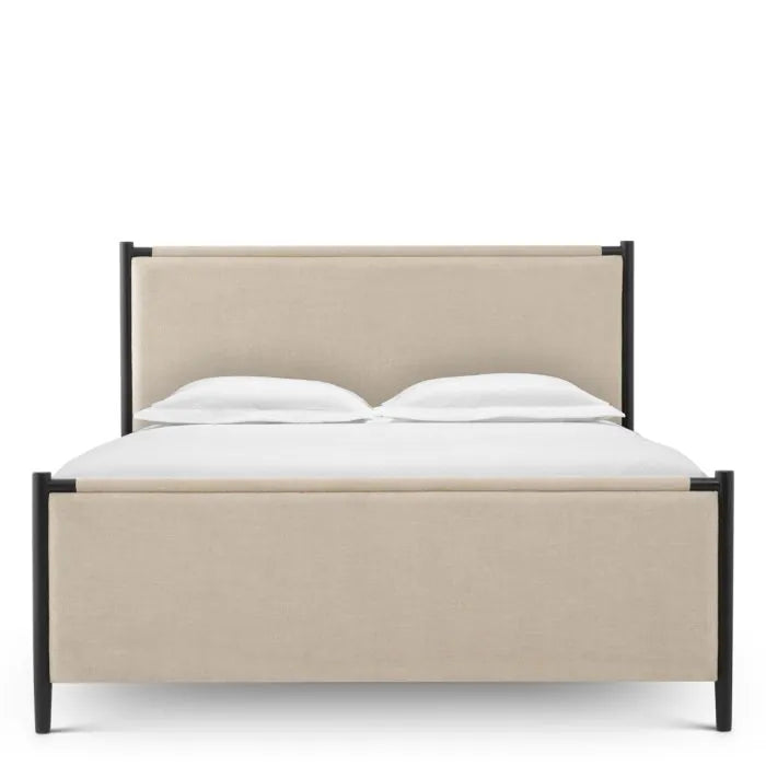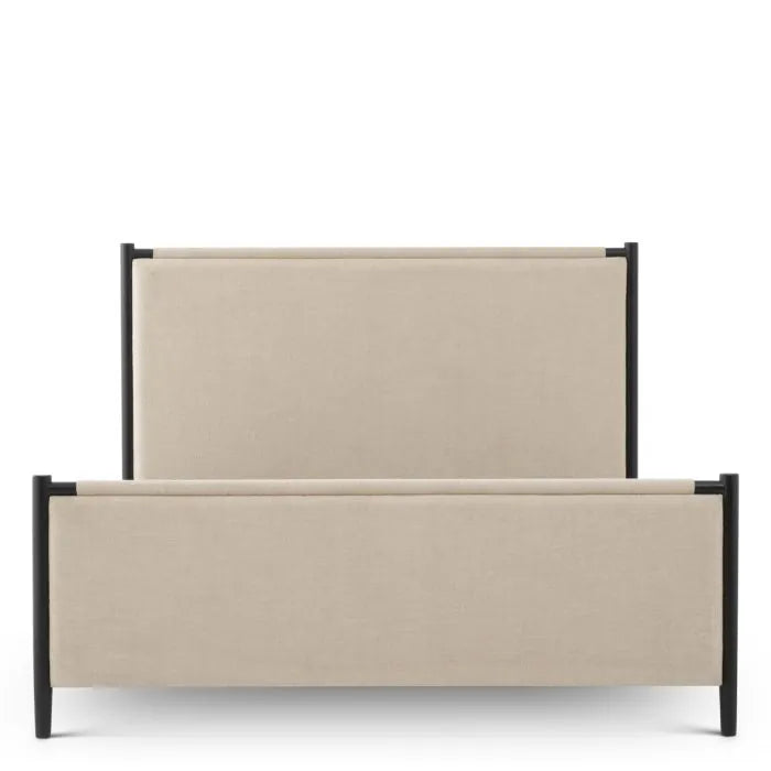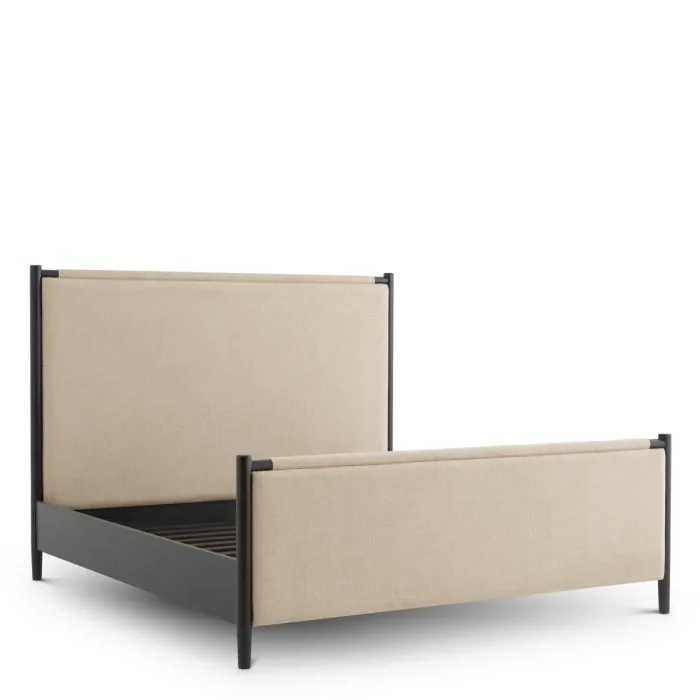 Az ágykeret exkluzív Renato újrahasznosított szövet kárpitozást kapott, amely amellett, hogy környezettudatos választás, rendkívül puha tapintású és tartós. A szerkezeti elemek és a lábak fekete finiseléssel (Black finish) készültek, amely kontrasztos és modern keretet ad a kárpitozott részeknek.
