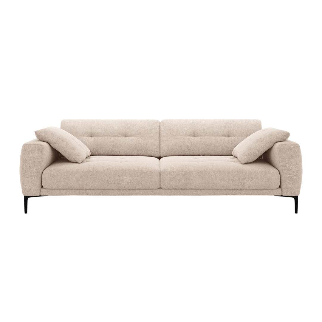 A 4 személyes Bemy kanapé az elegancia és a kényelem kiegyensúlyozott keveréke. Mély ülőfelülettel és letisztult, modern formával rendelkezik. Légies kialakítása könnyed stílust visz bármilyen helyiségbe. A karcsú fekete fém lábak pedig a könnyed, lebegő hatásért felelnek. A Bemy szövet kárpitozású kanapé hatféle színben érhető el.