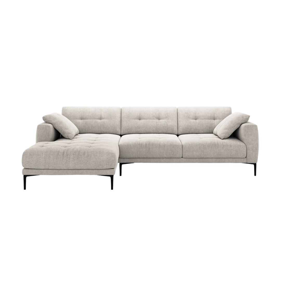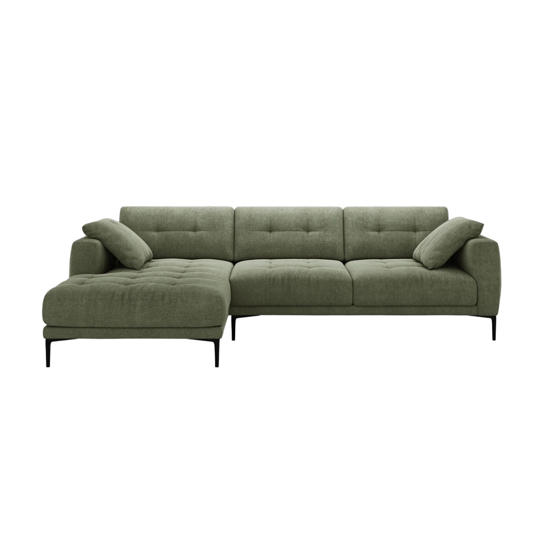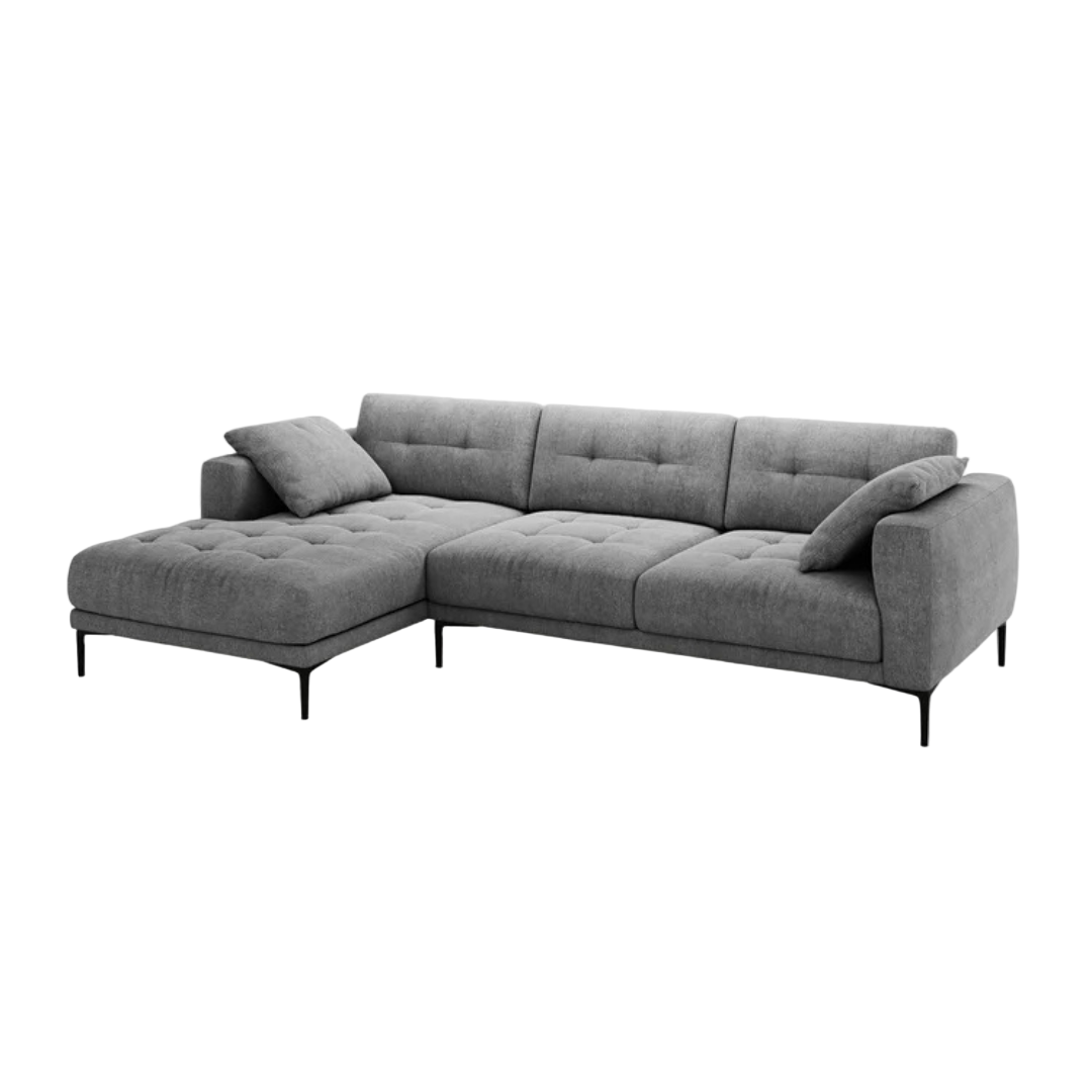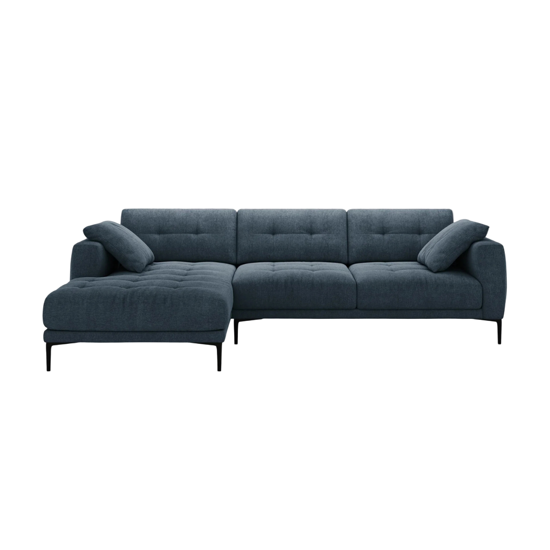 A 290x174 cm-es Bemy balos sarokkanapé az elegancia és a kényelem kiegyensúlyozott keveréke. Mély ülőfelülettel és letisztult, modern formával rendelkezik. Légies kialakítása könnyed stílust visz bármilyen helyiségbe. A karcsú fekete fém lábak pedig a könnyed, lebegő hatásért felelnek. A Bemy szövet kárpitozású sarokkanapé hatféle színben érhető el, és jobbos változatban is kapható.