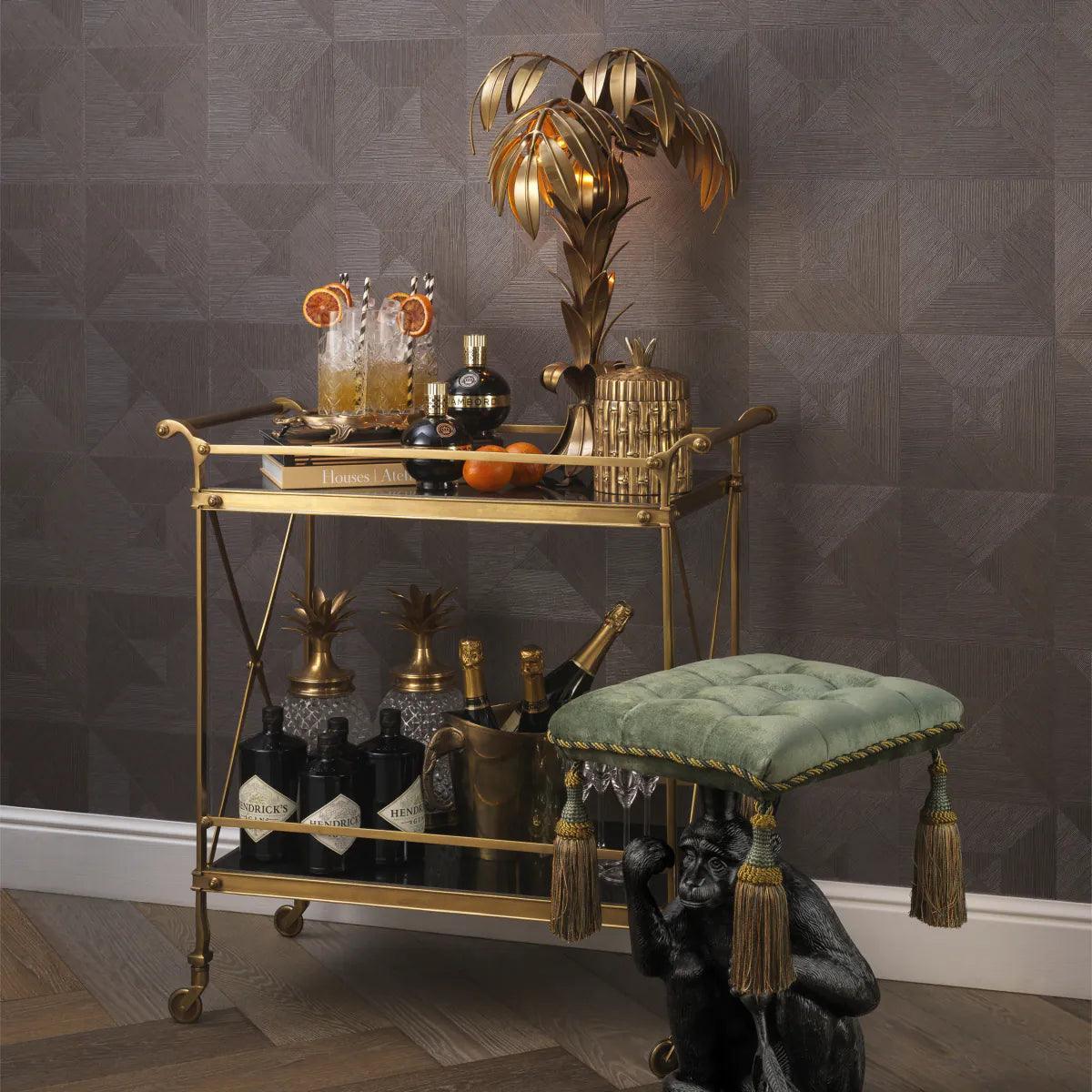 Add a touch of tropical style to your home decor with the Hollywood Palm, a palm tree-shaped lamp. This charming lamp comes in a vintage brass finish and adds a golden glow to classic and modern interiors. Perfect for adding a dramatic focal point to your living room. Its detailed craftsmanship and unique appearance make it a great decorative piece.
