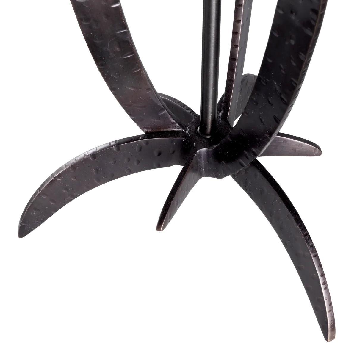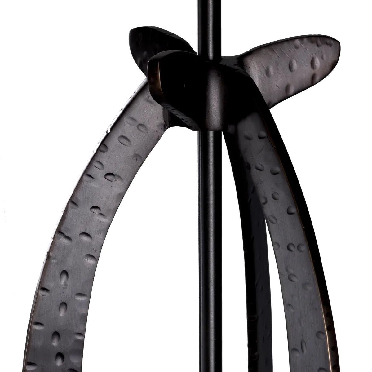 The Luciano table lamp stands out with its airy, open, curved frame, finished in a hammered bronze finish.