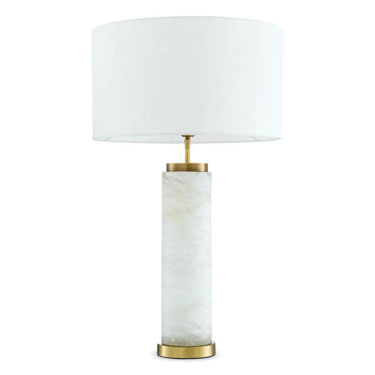 The Lxry table lamp is a symbol of sophisticated elegance and timeless beauty. The body of the lamp is crafted with the utmost care from white alabaster plaster, showcasing the unique, natural color variations of the stone. The antique brass finish gives it a touch of vintage sophistication, enhancing its overall appeal. Completed with a beautiful white shade, the Lxry table lamp creates a luxurious atmosphere in any space.