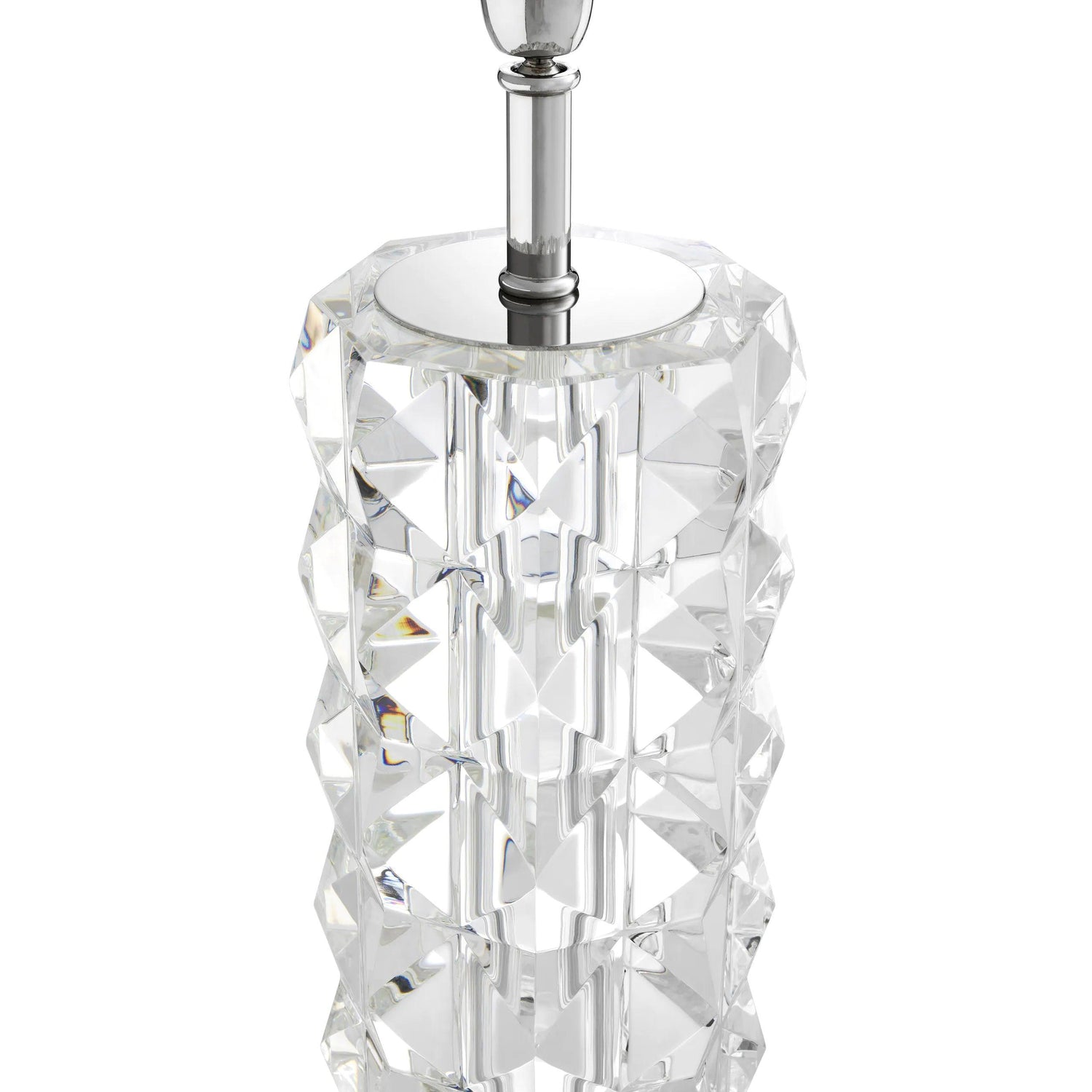 The sophisticated Mistero table lamp is perfect as a standalone piece in your interior. Let it bring timeless beauty to your home with its geometric crystal glass body and nickel-plated holder. When you turn on the lamp, the light shimmering on the crystal creates a wonderful atmosphere. Available with a round, white fabric lampshade.