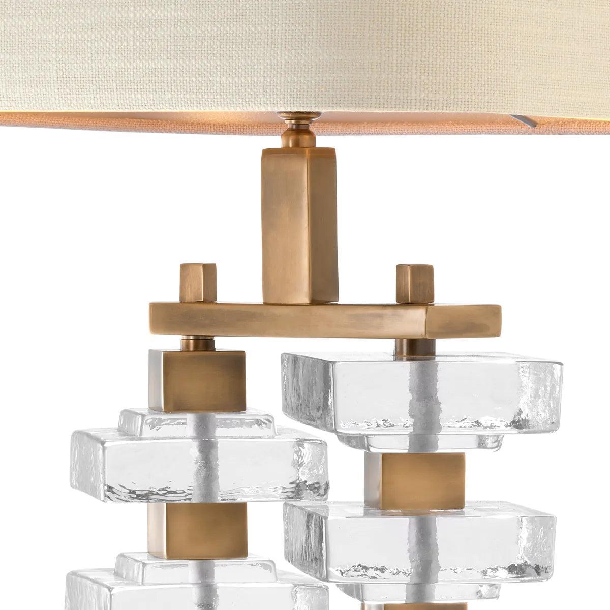 The Toscana table lamp combines contemporary style with mid-century modern appeal. The sculptural nickel lampshade features expertly arranged crystal glass accents that add a luxurious sparkle and elegance to your interior. It is topped with a beige fabric shade.