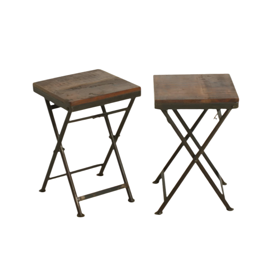 Folding bistro chair from the Factory collection. Perfect as additional seating or as a storage table. Foldable and easy to store thanks to the special clip on the bottom. Perfectly matches the Factory folding bistro table. The Factory collection is made of 100% recycled wood. The wood comes from old, demolished houses, abandoned factories, floorboards, wall panels and roof structures. The wood has a darker shade due to years of use.