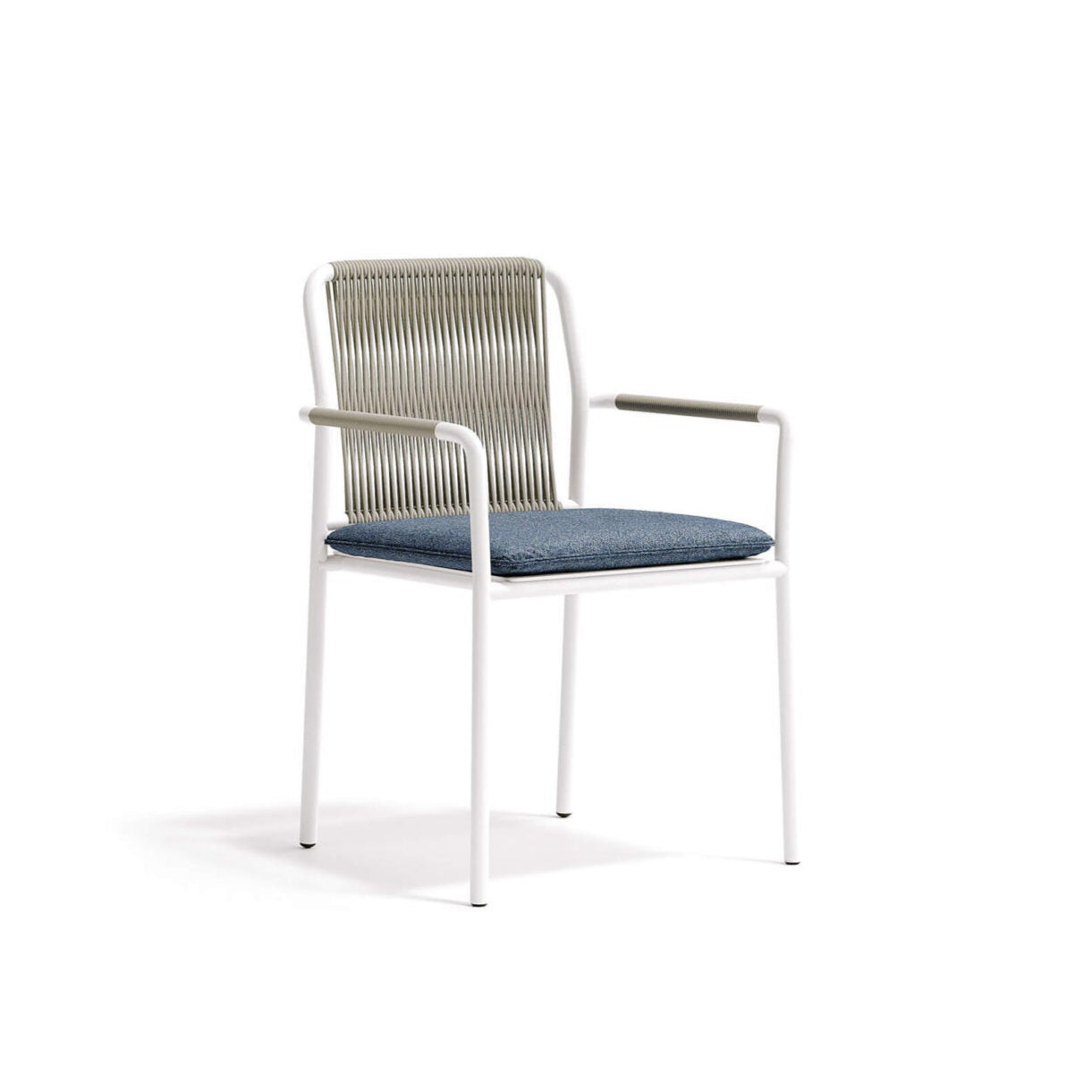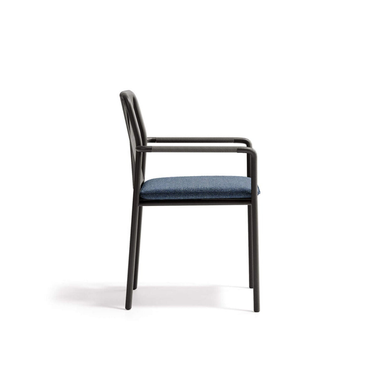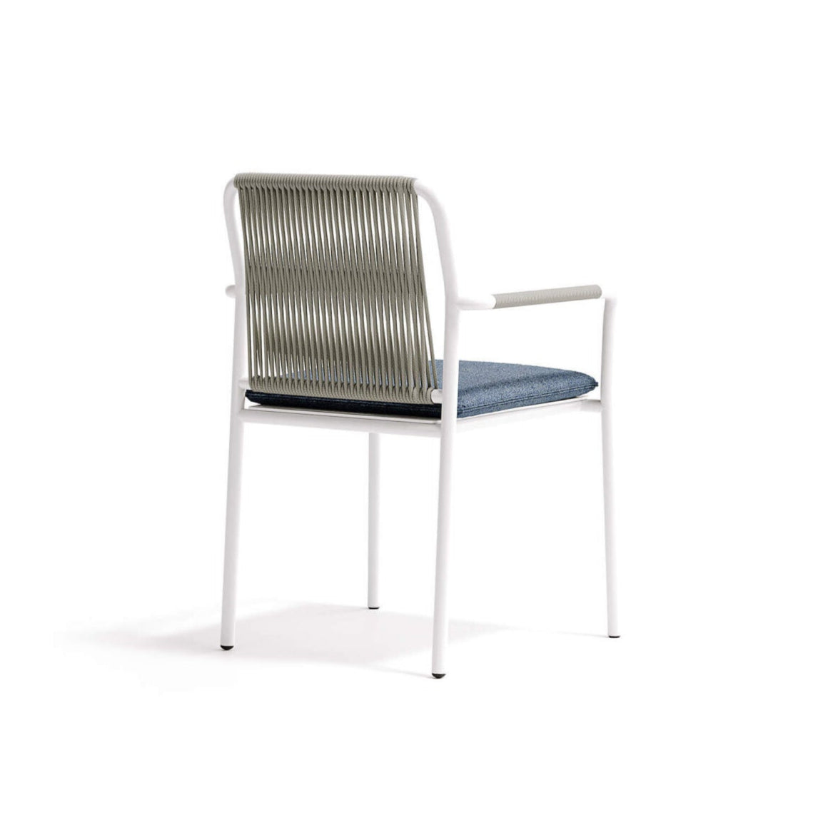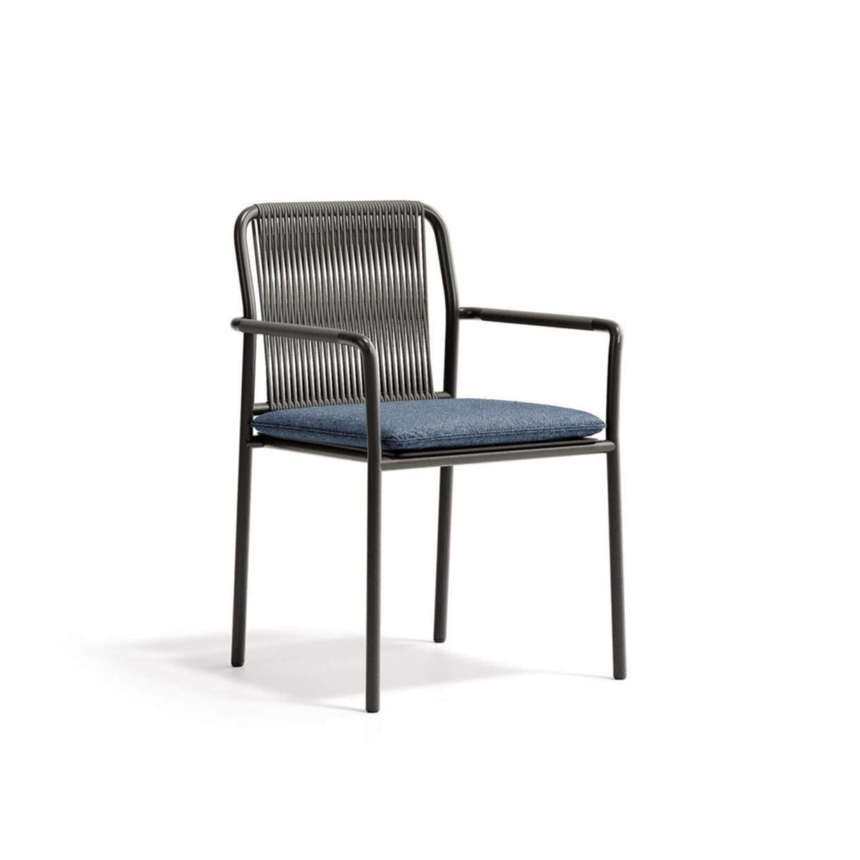The scent of fresh air and timeless taste: this is the inspiration that unites and characterizes the Air collection. The solid white or graphite aluminum frame flows airily, embracing the seat with clean, geometric lines, decorated with a handmade weave that also forms the backrest and lends elegance to the armrests.