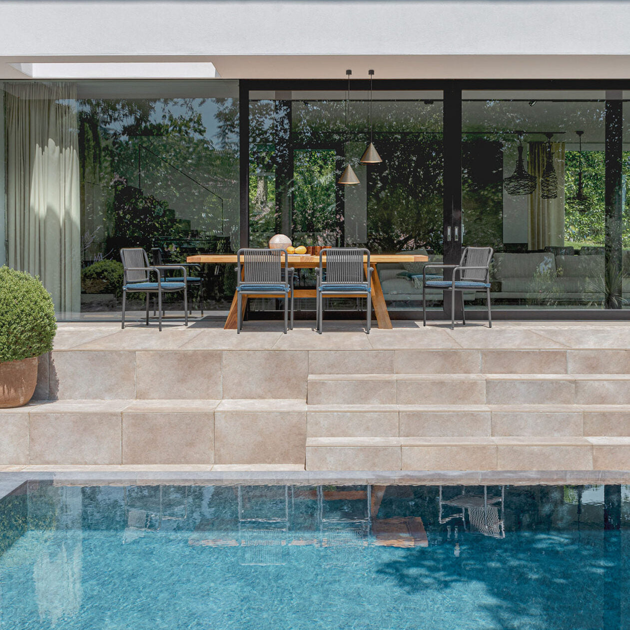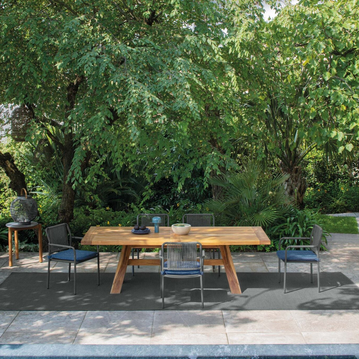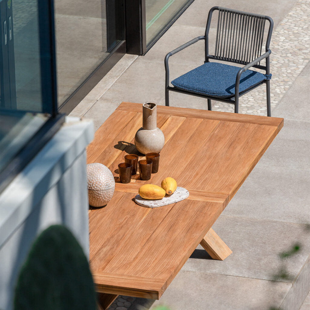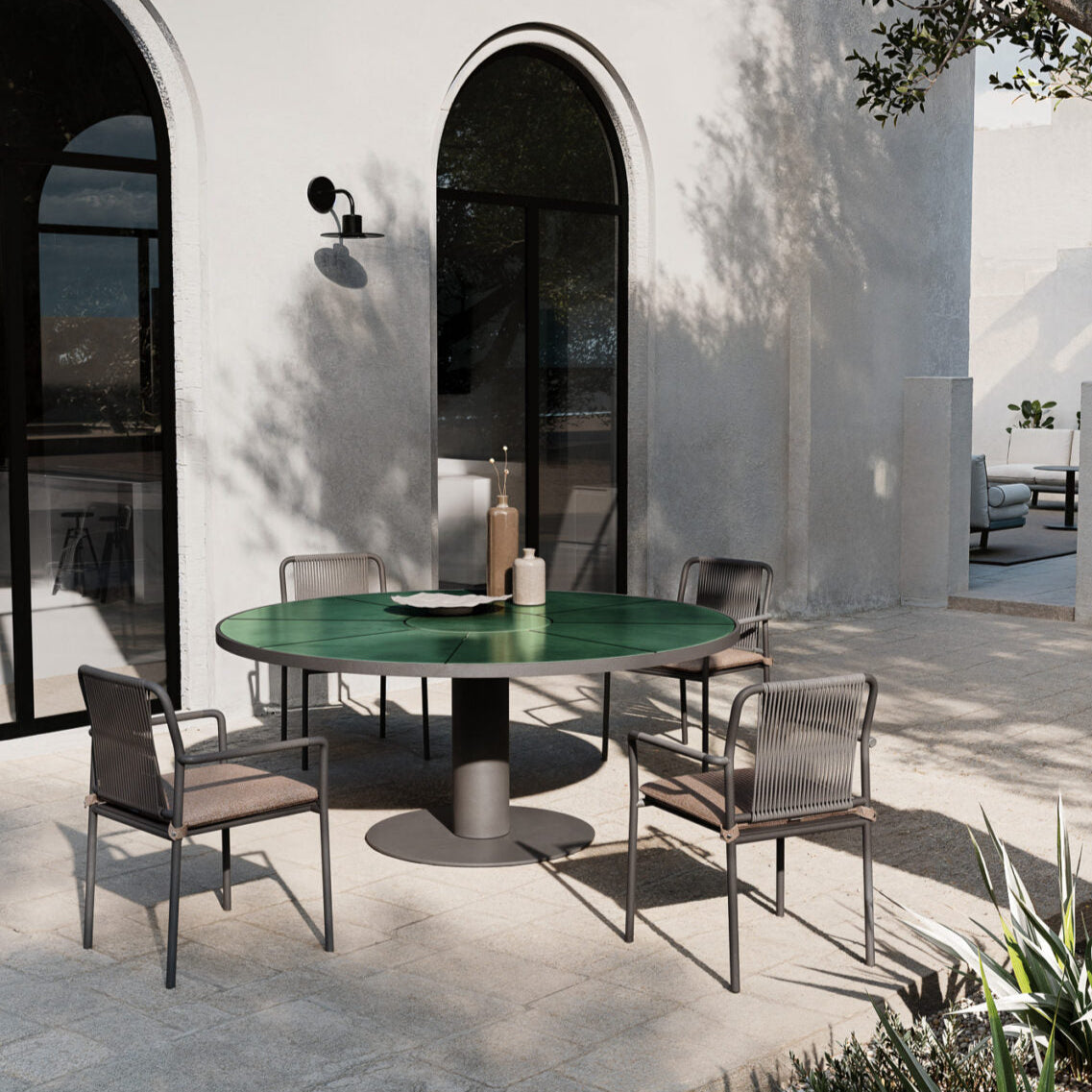 The scent of fresh air and timeless taste: this is the inspiration that unites and characterizes the Air collection. The solid white or graphite aluminum frame flows airily, embracing the seat with clean, geometric lines, decorated with a handmade weave that also forms the backrest and lends elegance to the armrests.
