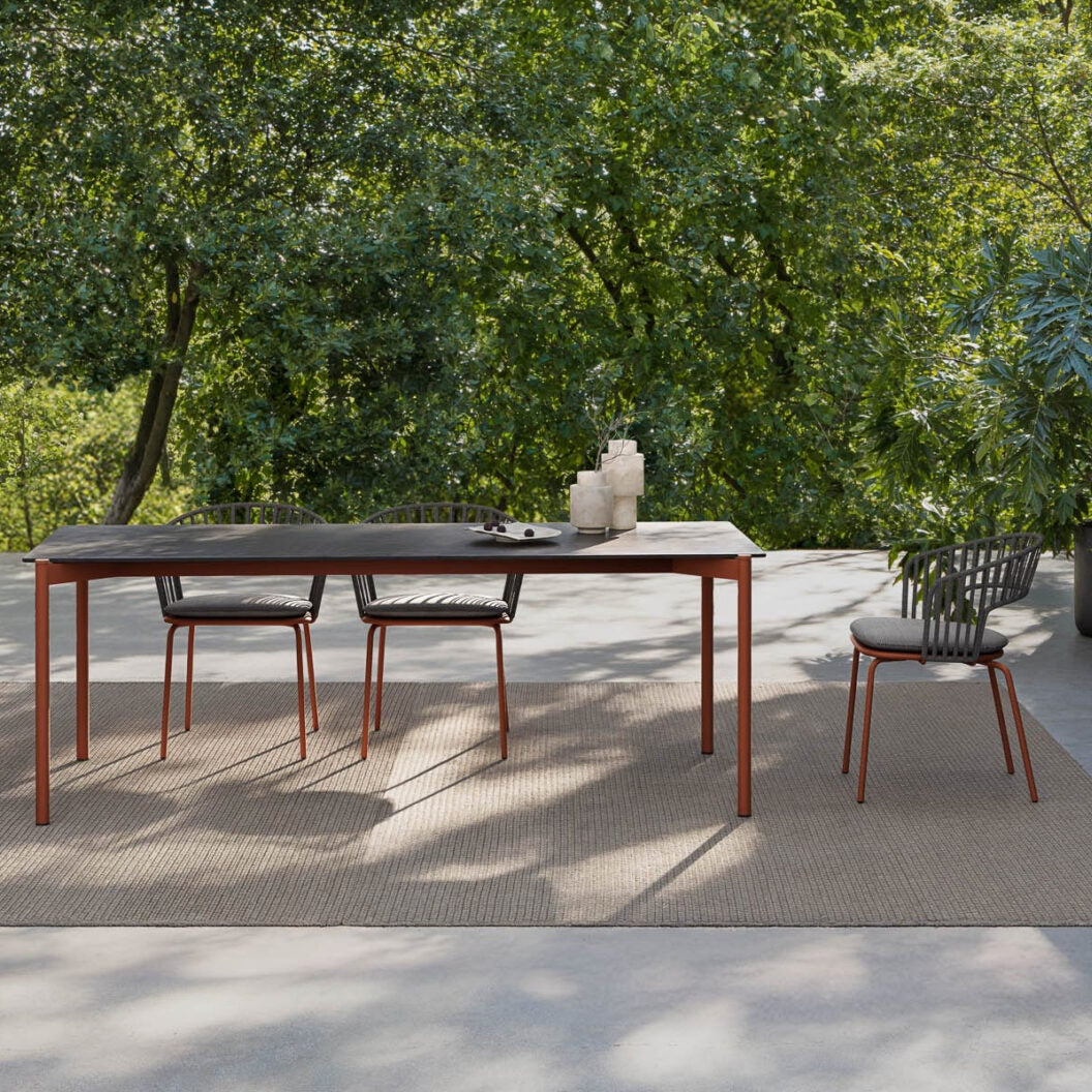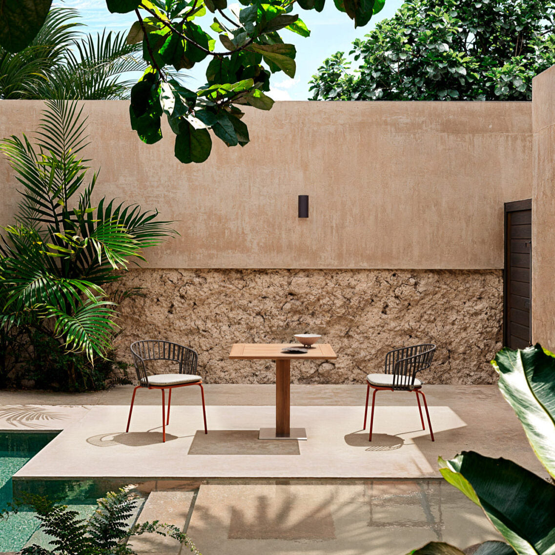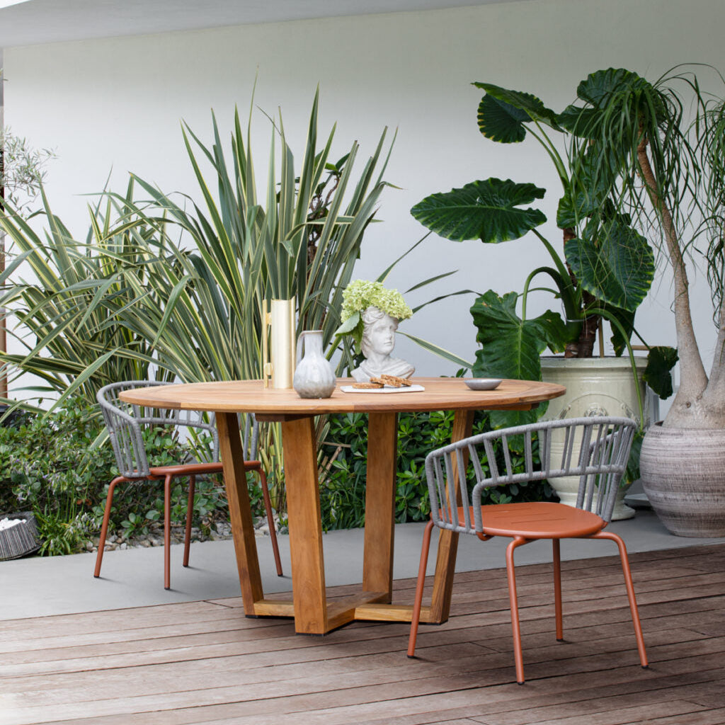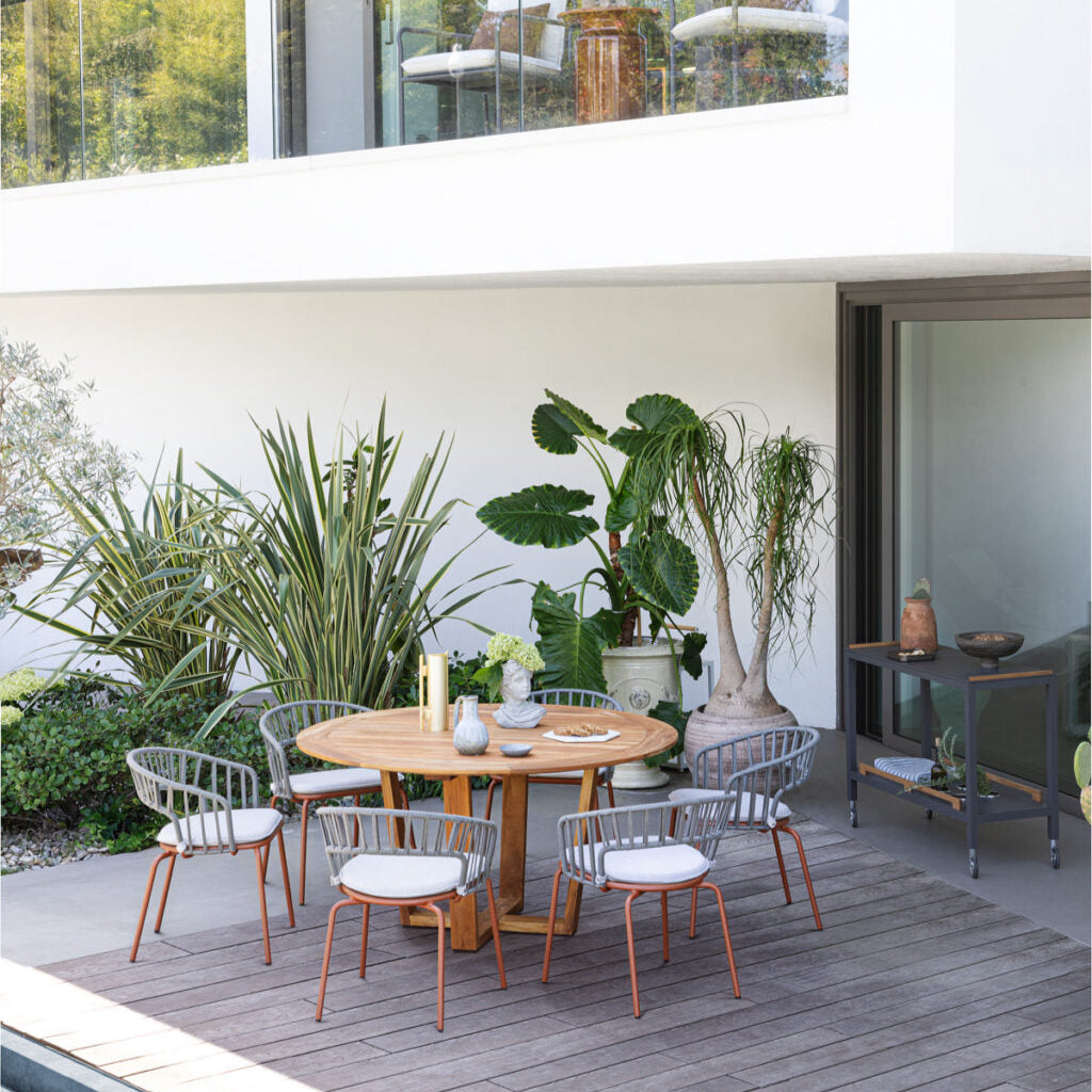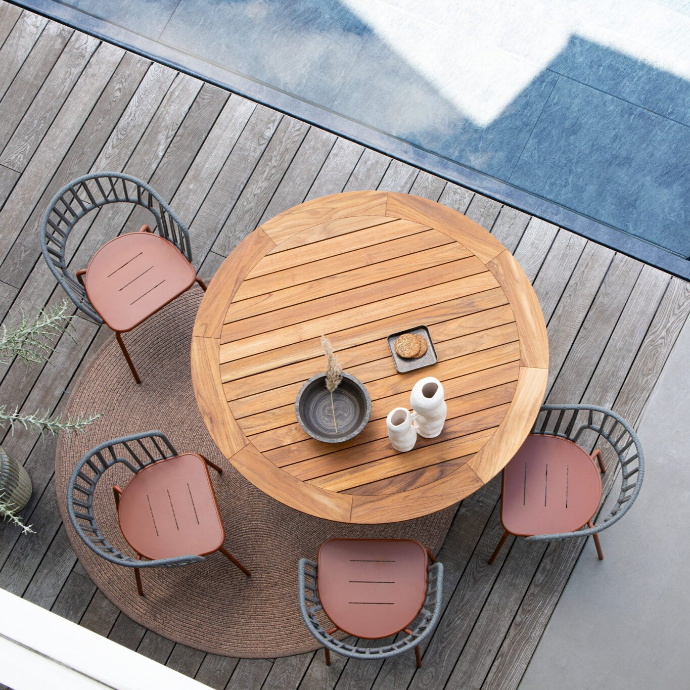 The Onda garden chair is distinguished by its characteristic woven backrest that hugs the body like a wave. Its curved, friendly shapes invite you to relax. Thanks to the opening at the waist, the woven backrest gives the chair a lightness and dynamism and allows it to be stacked, which is very useful for space-saving storage.