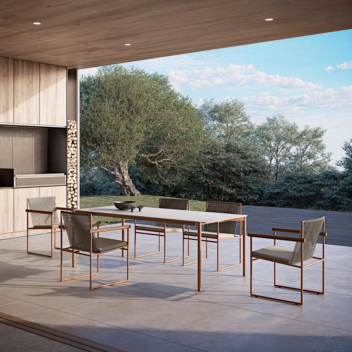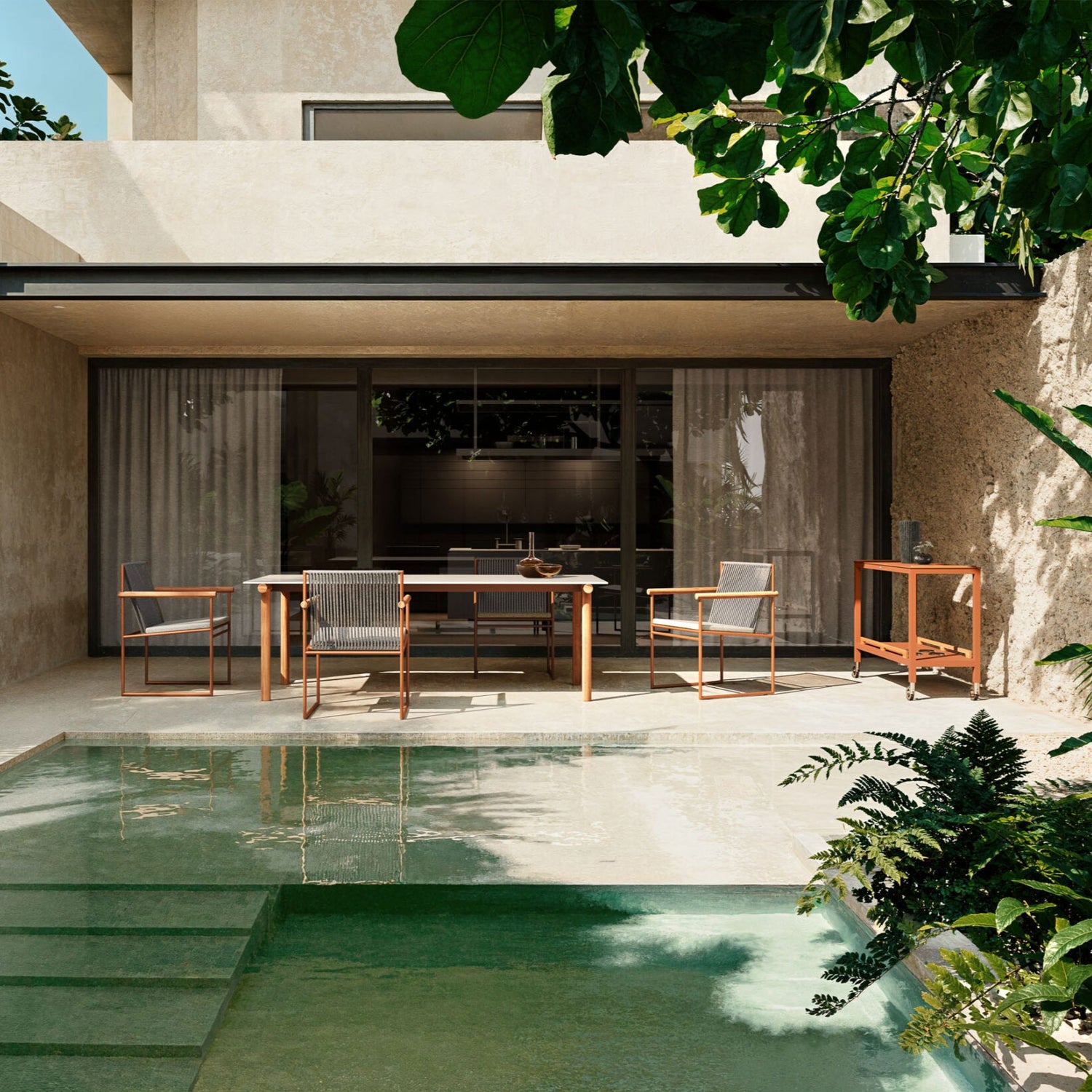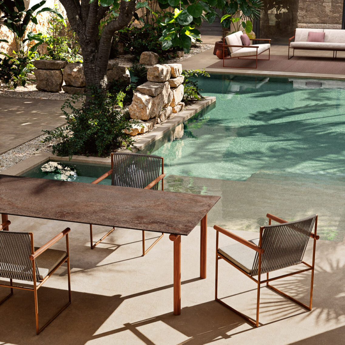 The Pipe collection is characterized by bold geometric shapes and a combination of materials and surfaces that create a perfect unity, giving the entire garden a strong, expressive character. Available with a choice of different cushions.