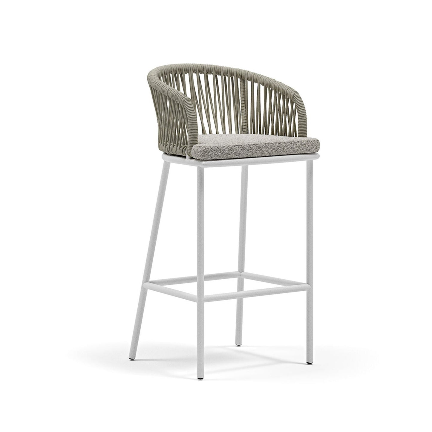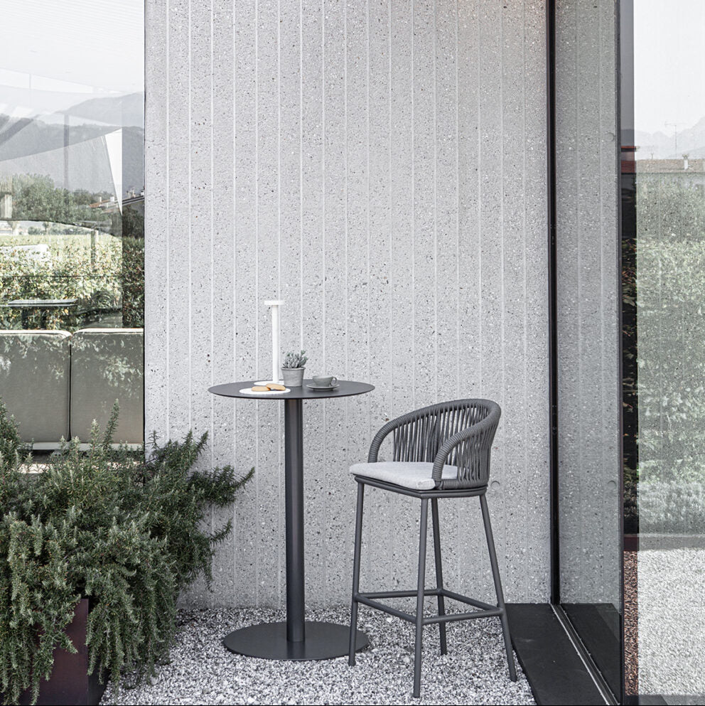 The elegant white or graphite aluminum frame is covered in a fabric woven from textile-like cords. The Pleasure collection brings sophistication and comfort to any space with its natural, soft look. Available with a choice of upholstery.