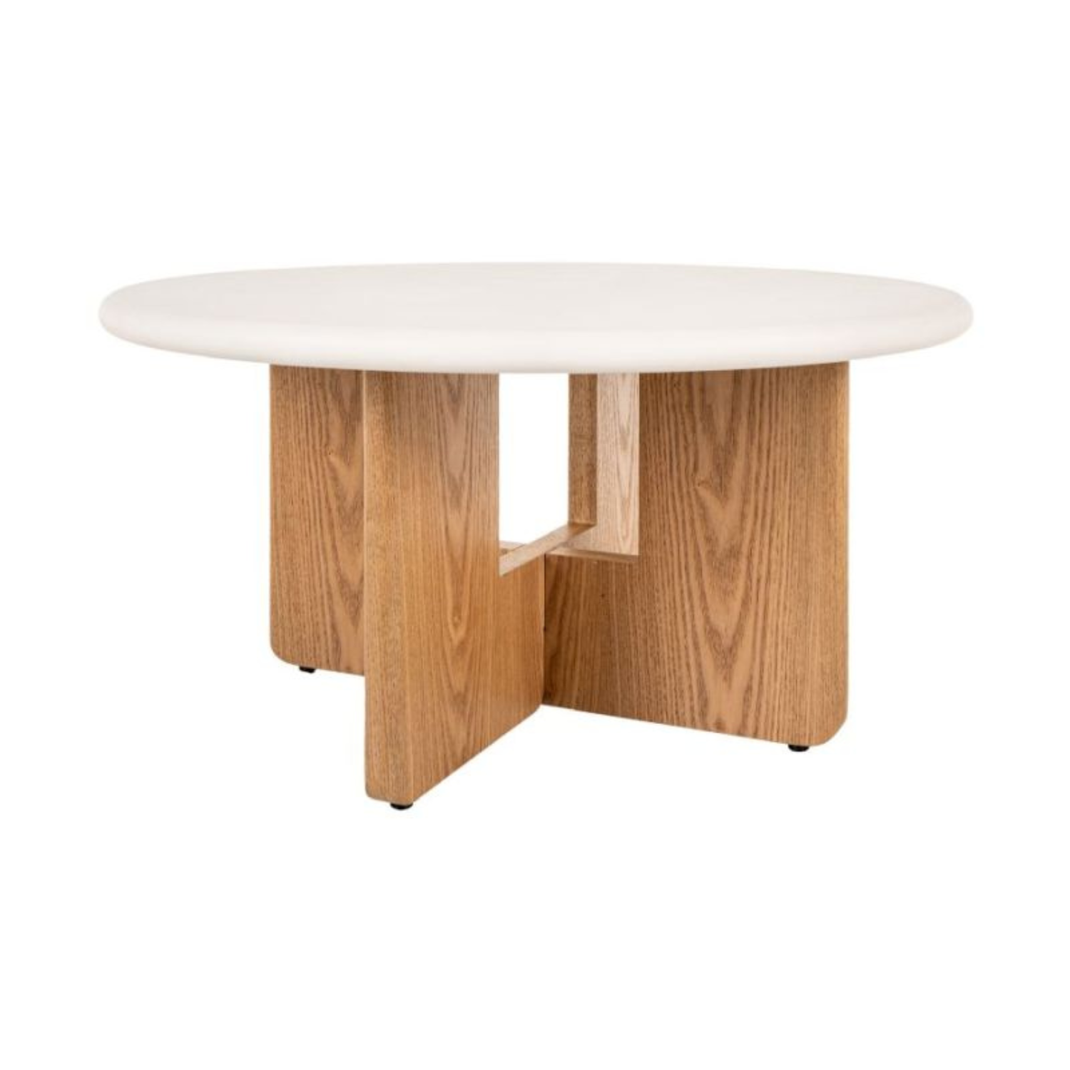Az Alma dohányzóasztal a különleges anyaghasználat és a skandináv design remekműve. A 80 cm-es átmérőjű asztallap mikrocementtel bevont MDF-ből készült, amely nemcsak esztétikus, hanem tartós és egyedi textúrát is kínál. Az asztal vázát természetes tölgy furnér borítja, amely kiemeli a fa erezetének szépségét. A 40 cm-es magasság optimális kényelmet nyújt a kanapé mellé helyezve, legyen szó kikapcsolódásról vagy vendégfogadásról. A világos ecru tónus és a természetes fa találkozása tágítja a teret és világosabbá teszi az enteriőrt.