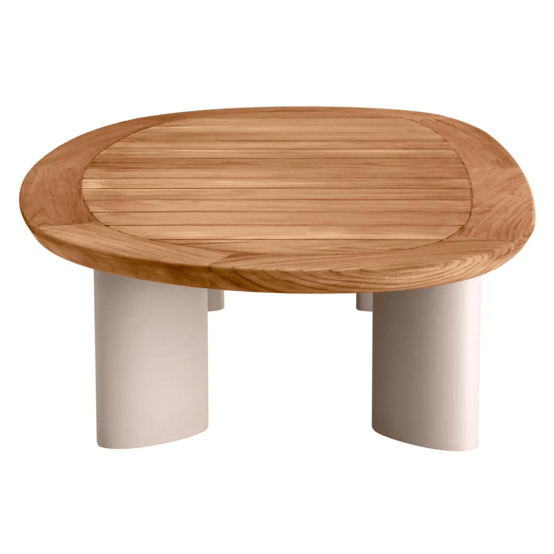 The Free Form coffee table is an ideal choice for various gardens, terraces, or even by the pool. Thanks to its large size, it comfortably accommodates all daily objects, decor, and even drinks. With its beige legs and natural-colored table top, it creates an elegant yet natural effect that harmoniously fits into any garden or terrace design.