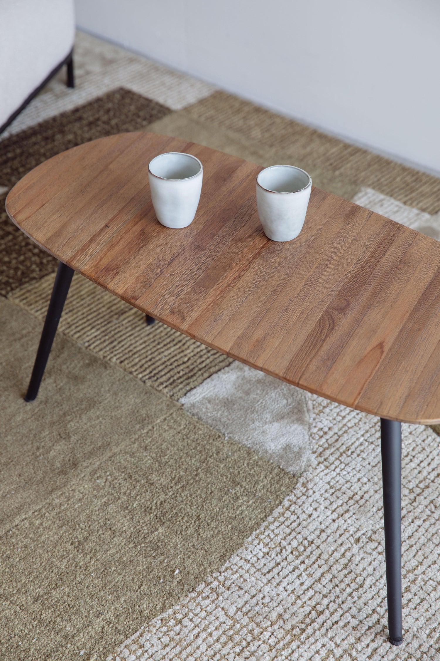 This coffee table has ceramic tops on MDF boards, supported by a powder-coated metal frame. The ceramic plates give the table a modern and elegant look, while the powder-coated metal frame provides a stable base. It can be an ideal choice for the living room or lounge, where a unique and stylish piece of furniture is needed.