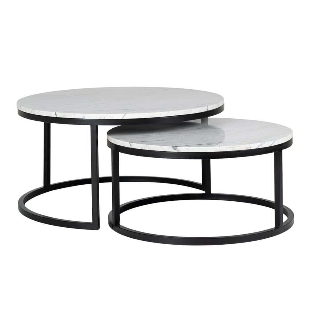 Elegant and modern, the Lexington coffee table is the perfect choice for stylish homes. The set consists of two pieces, each with a white marble top and supported by black metal legs. This combination gives the table an elegant and clean look, making it a great fit for modern interiors. The size and shape of the tables allow them to be used separately or together, making them flexible to suit your needs.