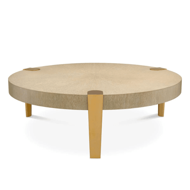 Give your home a modern and minimalist feel with the Oxnard wooden coffee table. The round table top is made of light oak veneer and stands on three brushed copper legs. Whether you are looking for a retro or contemporary look, this stylish accessory will be the perfect choice. At the same time, the table's simple yet elegant design allows it to fit into any interior. The combination of light-colored oak and copper creates a unique monochrome contrast that will brighten up any room. Combine it with other wooden or metal accessories for a harmonious look.