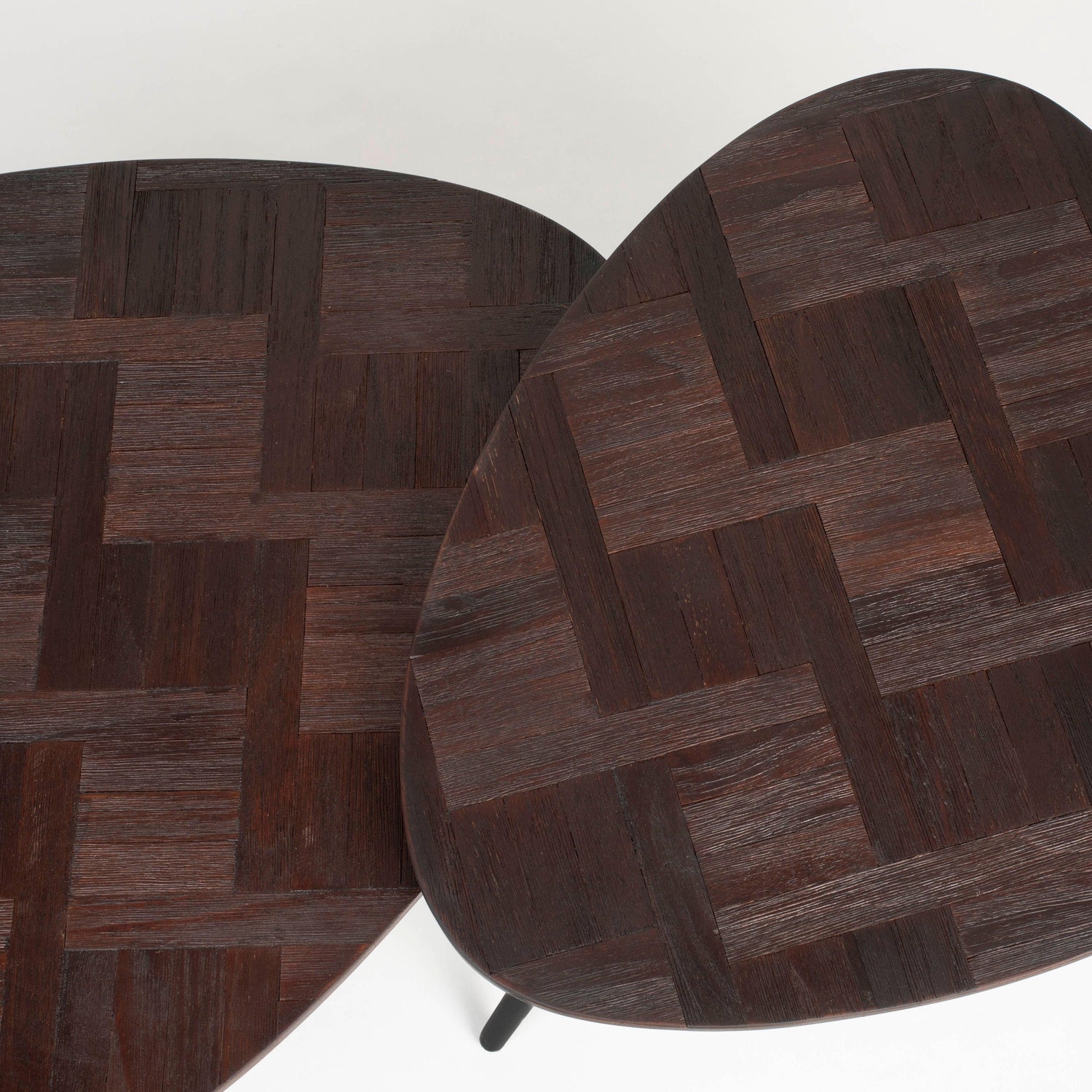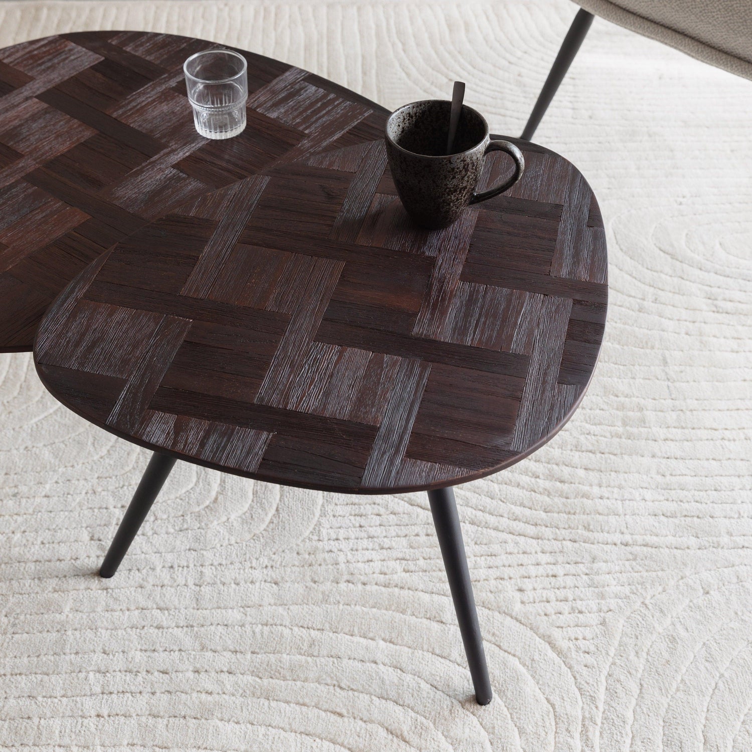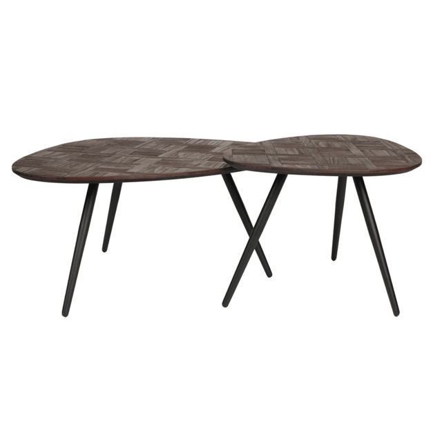 The Pion coffee table is an elegant and classic-looking piece of furniture. Its dark brown patterned tabletop makes it truly unique, while the black metal legs make it durable. The set consists of two pieces, so you can use them in one room or in two different rooms. Thanks to its high-quality materials, it retains its aesthetics and functionality in the long term.
