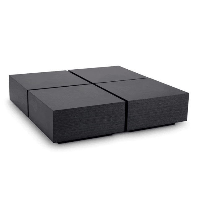 The Puro wooden coffee table set is a practical four-piece table set that offers a variety of layout options. Each table is covered in dark oak veneer. You can personalize the set as you like: use each table separately, next to the armrest of your sofa, as a bedside table or as a low console table against the wall, or combine all four to form one large coffee table. The versatile design allows you to use the tables in different rooms or combine them into one larger table as a centerpiece in your living room. Pair them with furniture in similar tones or with decorations in contrasting colors for an even more dramatic effect.