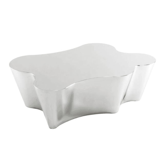 The Sceptre metal coffee table is made of polished stainless steel, reminiscent of playful ink blots. The unusual shape of the table is truly unique and eye-catching. It fits perfectly with eclectic or modern decors. The shiny surface of the steel makes it a great addition to modern and clean spaces. It can be an ideal choice for an interior full of artistic elements.
