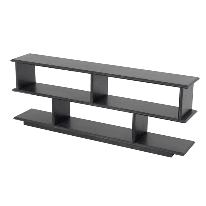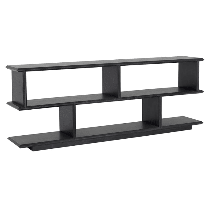 If you are looking for something unique yet space-saving, the Garcia wooden shelf in a low design is the piece for you. With its charcoal grey oak veneers and offset shelves, it provides ample storage without taking up much space in your living room, study or even your home office . It is the perfect place to store your books and collections.