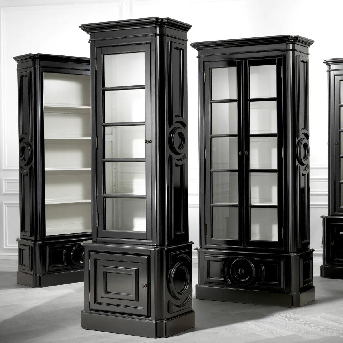 If you are looking for a modern and stylish cabinet, then the gorgeous Grand Royale wooden shelving system is the perfect choice for you. The two-door section is made of clear glass, complemented by a white interior. It contains four spacious shelves, providing ample space for storing your favorite decorative and practical items. There is a drawer at the bottom. The shelving system is made of birch wood with brass fittings.