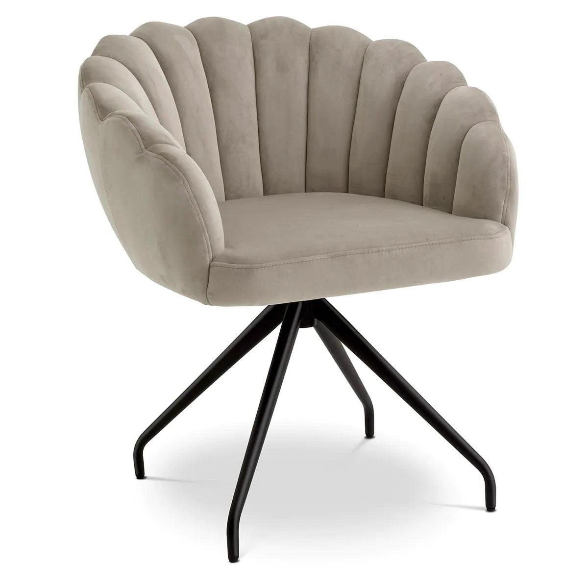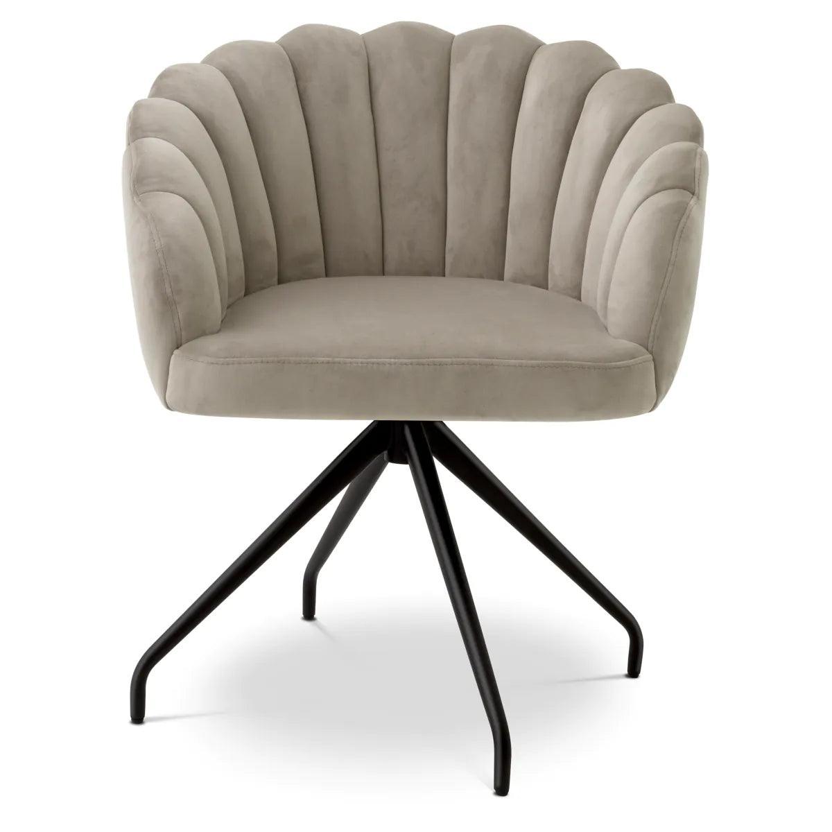 Enjoy the luxurious feel and elegant look of the velvet Luzern dining chair. Warm and soft, the Luzern shell shape is upholstered in velvet and finished with a black swivel base and splayed legs. The extremely simple yet striking curved back has a slimmed-down top edge that perfectly combines fashion and retro, making it a magical addition to your dining room.