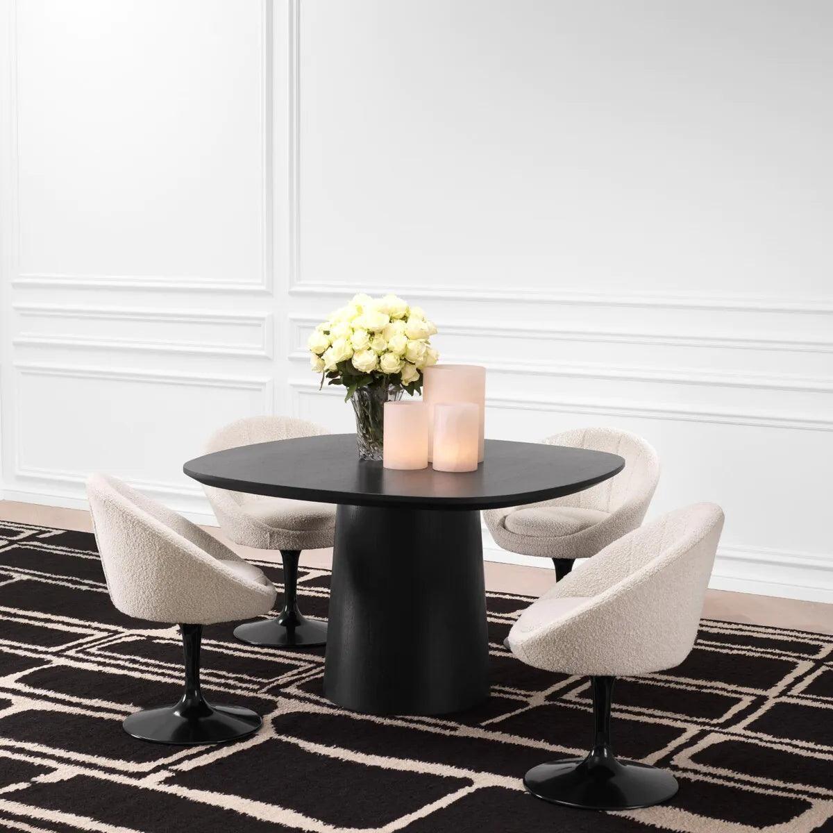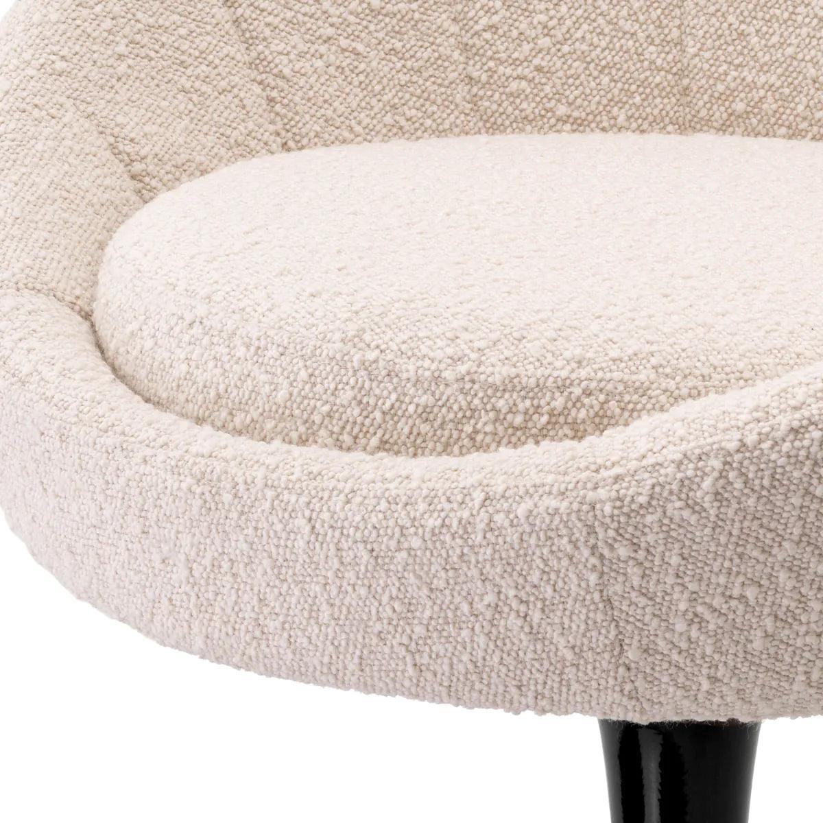 The O'Neill dining chair exudes a 1960s aesthetic and will add a retro feel to your home. This fabulous swivel chair has a central leg that ends in a bell-shaped base. The tub-shaped seat is upholstered in a lush bouclé cream fabric.