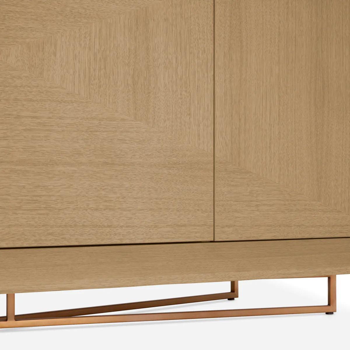 The majestic Sonesta wooden cabinet is a work of art, highlighting the natural elegance of your bedroom. Decorated with a sophisticated natural oak veneer, the chest of drawers boasts a subtle and captivating pattern on the doors, while the brushed brass legs further enhance its appeal. The Sonesta wooden cabinet offers an impeccable storage solution that is also a sumptuous addition to your bedroom decor.