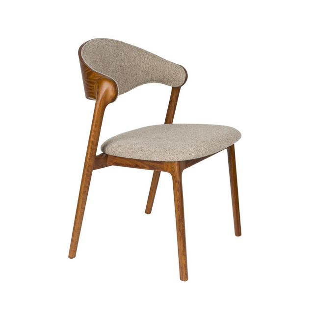 Teremts elbűvölő hangulatot az étkezőben olyan karakteres bútorokkal, mint a Dutchbone Babington széke. Ez az étkezőszék azonnal eszünkbe juttatja a minőséget, és vintage megjelenést. A tölgyfa keret úgy van kidolgozva, hogy a váz beleolvad a háttámlába, a mély sötétbarna, vagy natúr szín pedig meleg megjelenést kölcsönöz, amely harmóniában van az ülés és a háttámla világosbarna anyagával.