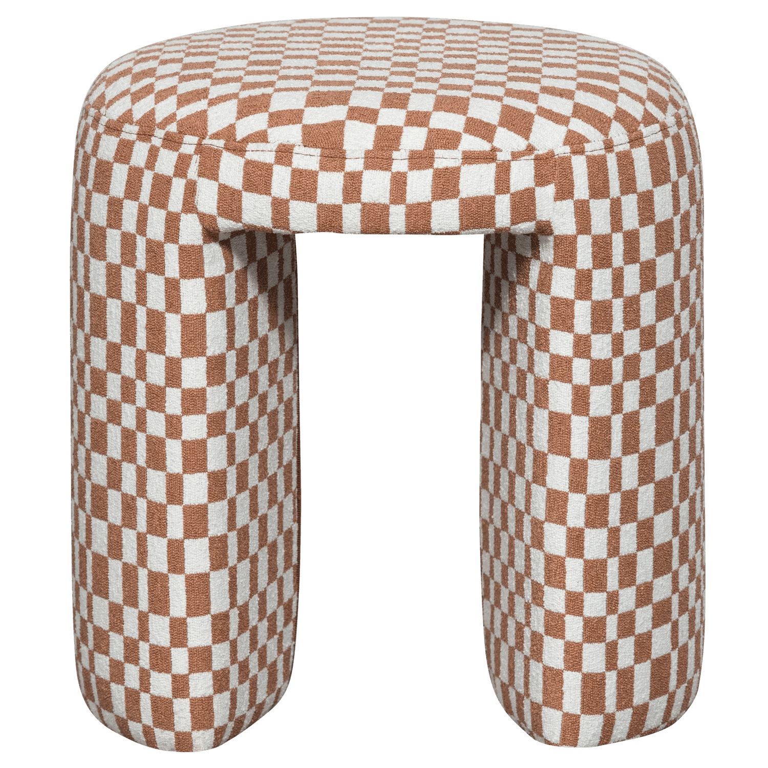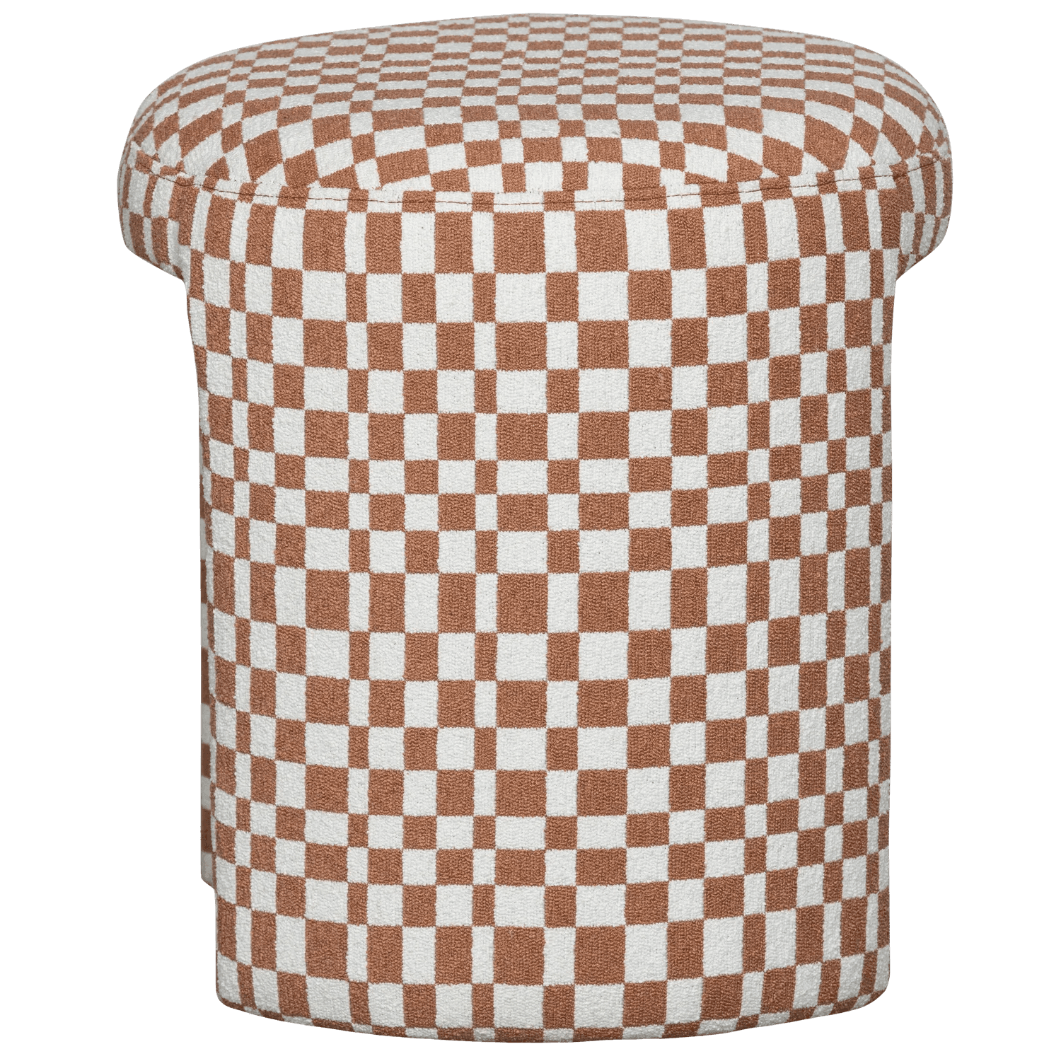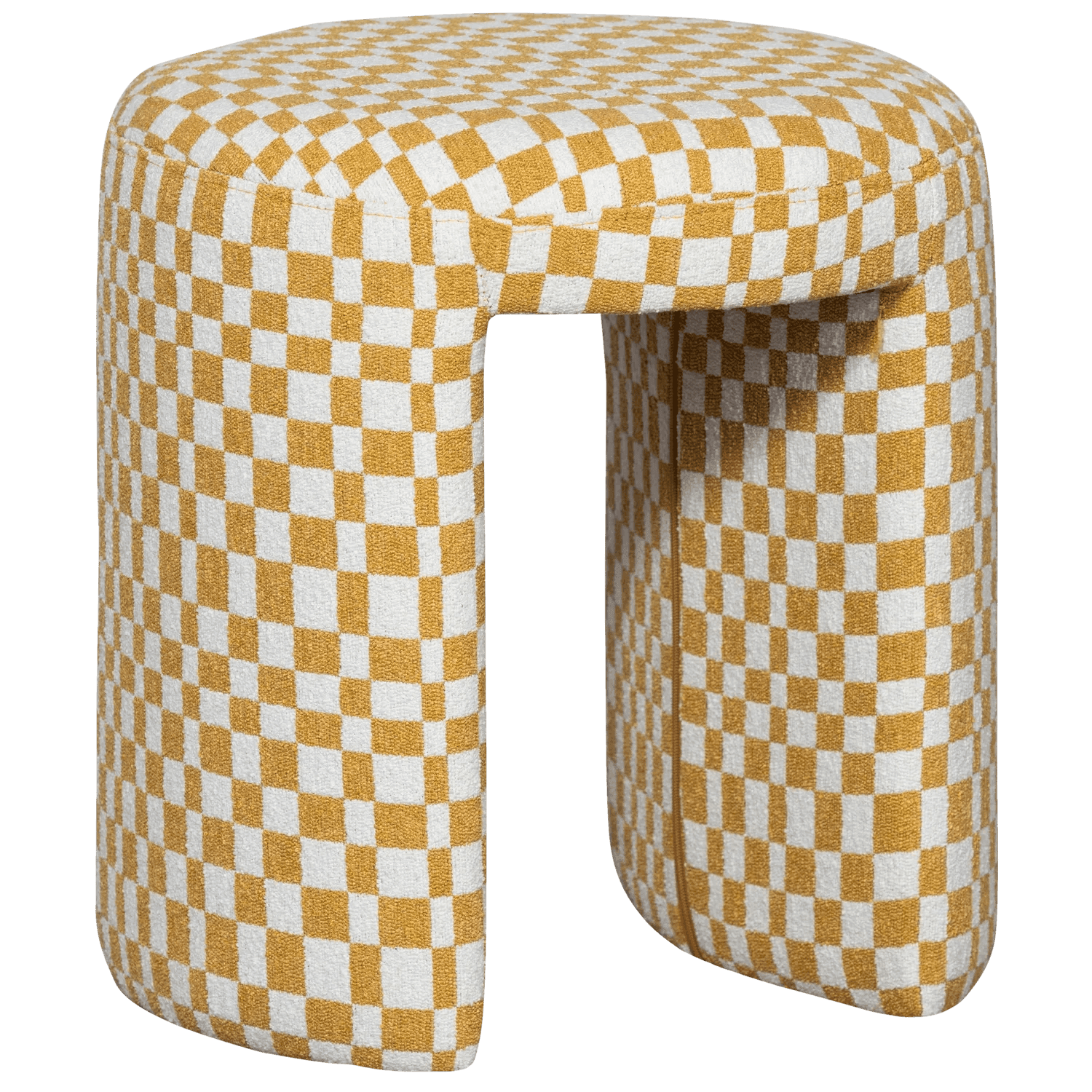 The Charlie stool is a striking piece in the collection of Dutch home furnishing brand WOOOD. Charlie is covered from top to bottom in soft fabric, which gives the rounded, circular design a friendly look. The checkerboard pattern is the trend of the season, so this small seating option can be not only practical, but also a stylish addition to your home.