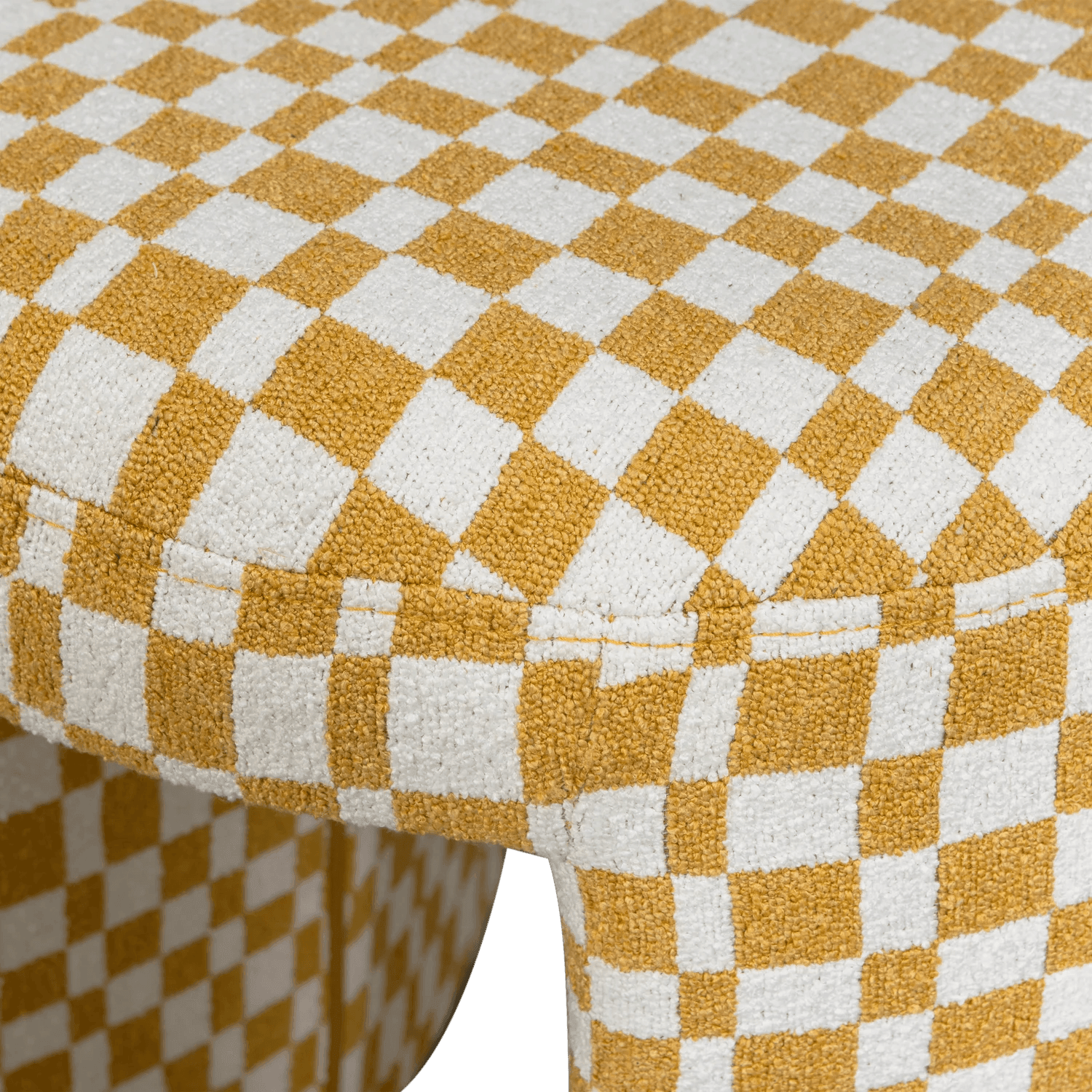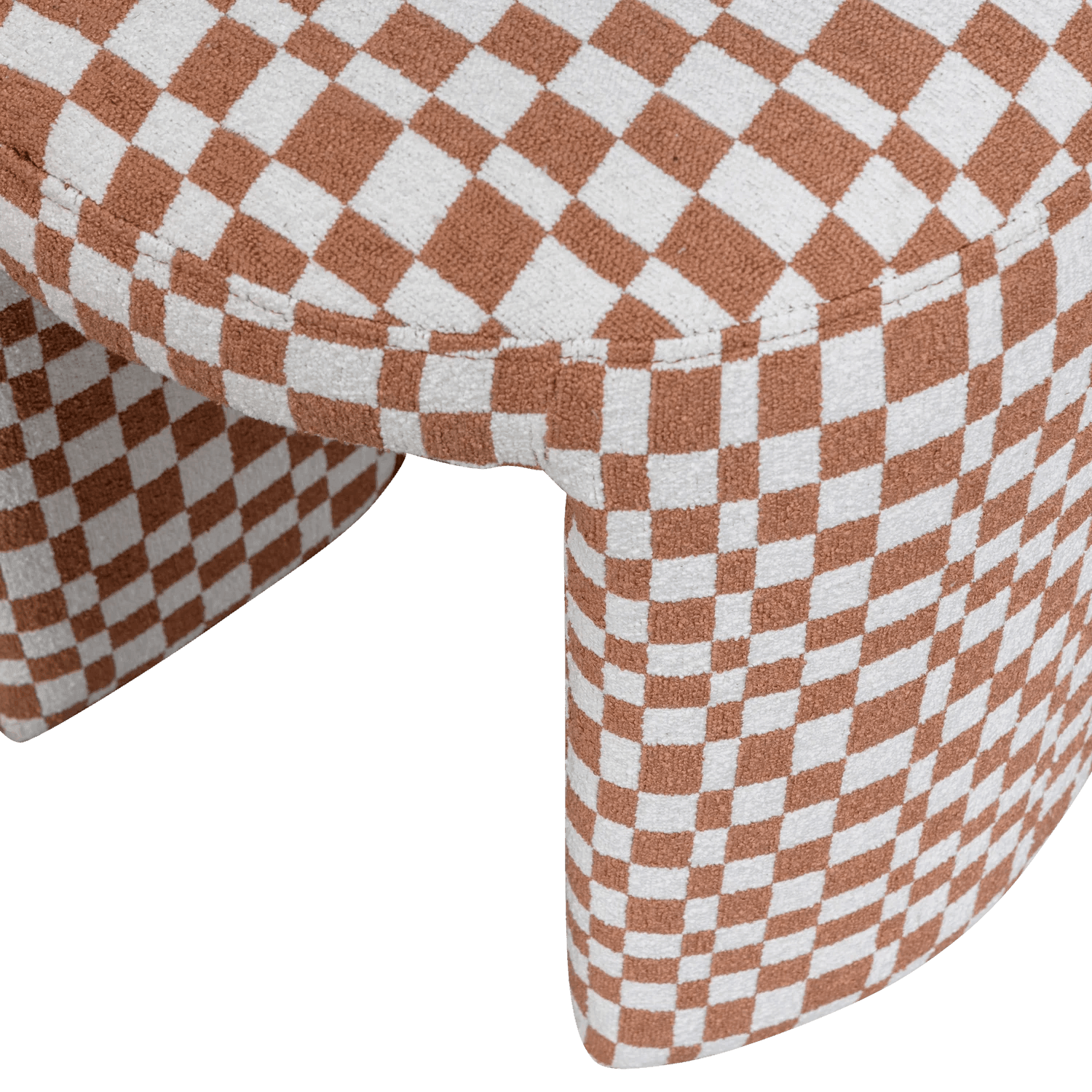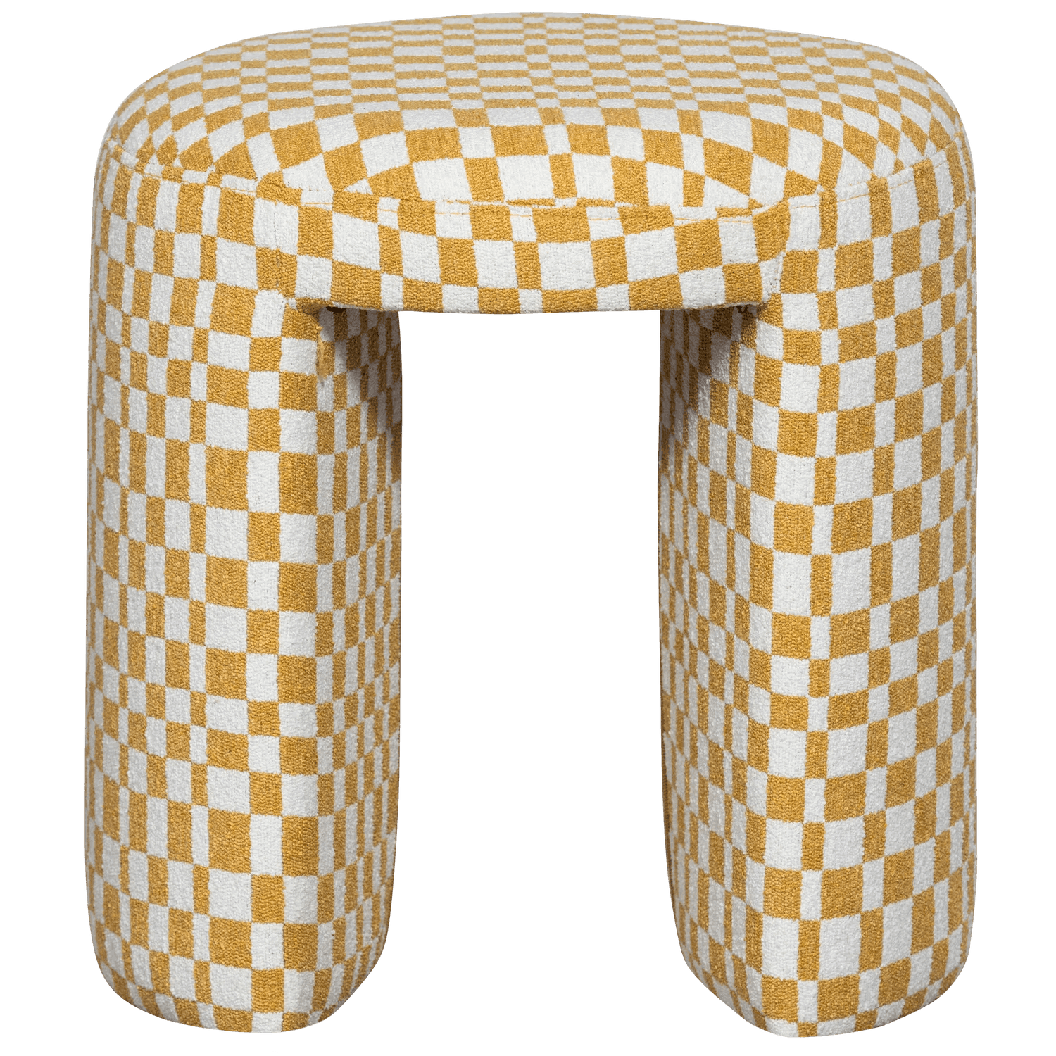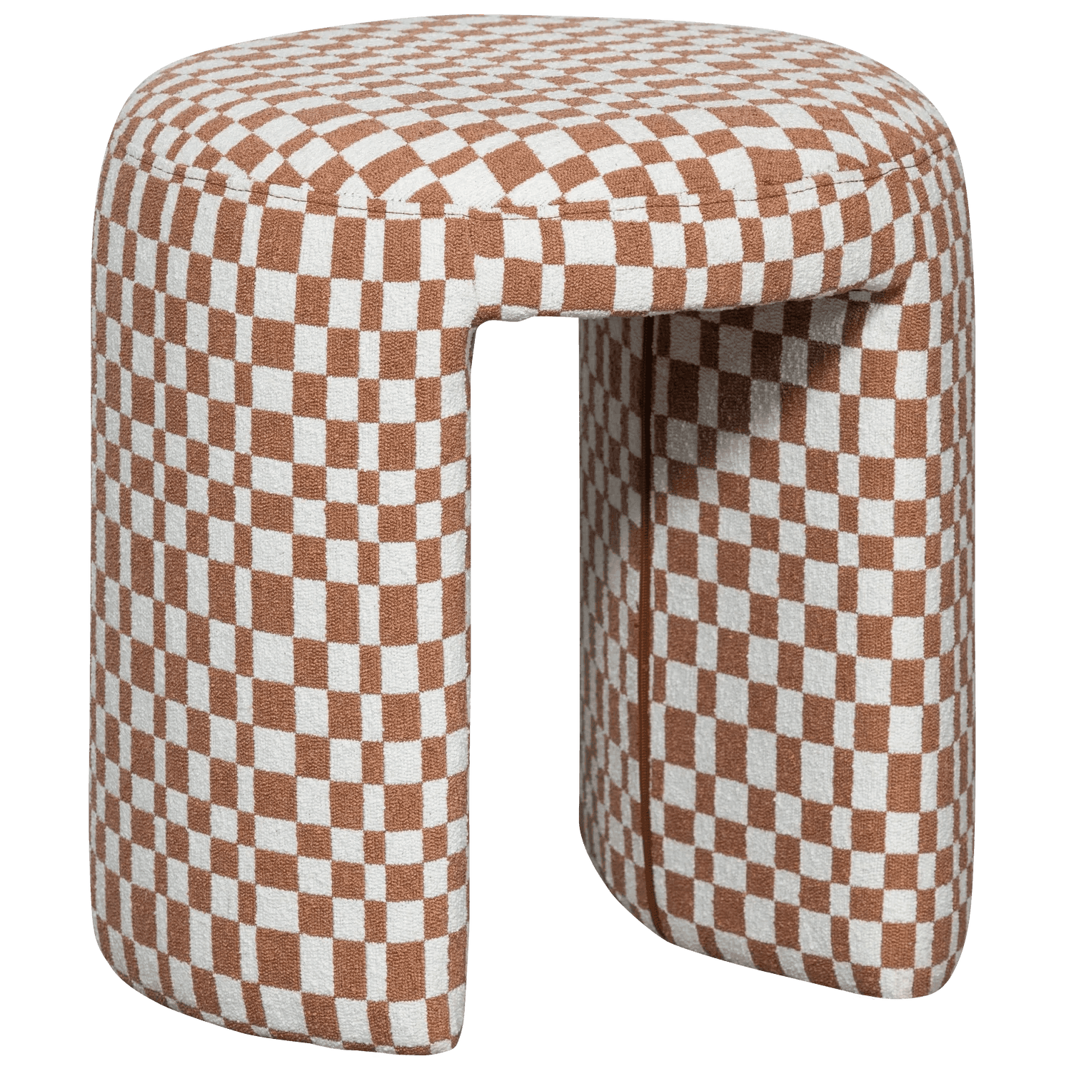 The Charlie stool is a striking piece in the collection of Dutch home furnishing brand WOOOD. Charlie is covered from top to bottom in soft fabric, which gives the rounded, circular design a friendly look. The checkerboard pattern is the trend of the season, so this small seating option can be not only practical, but also a stylish addition to your home.