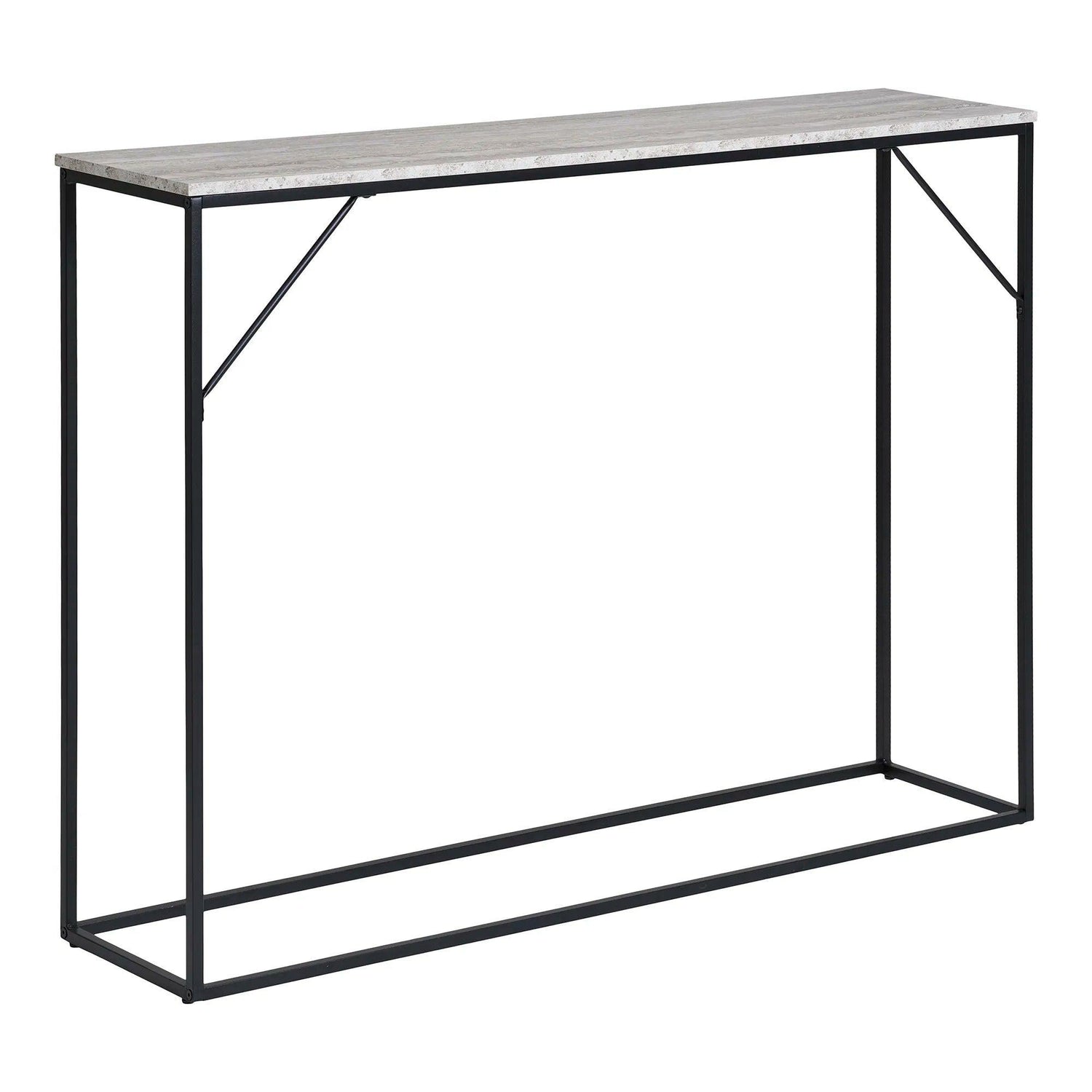 The Vita limestone-effect console table is a table with clean lines and a simple design that will fit into any home. The limestone-effect top and black frame easily fit into interiors of different moods and styles. Use it in your living room or hallway, it will definitely be a practical piece.