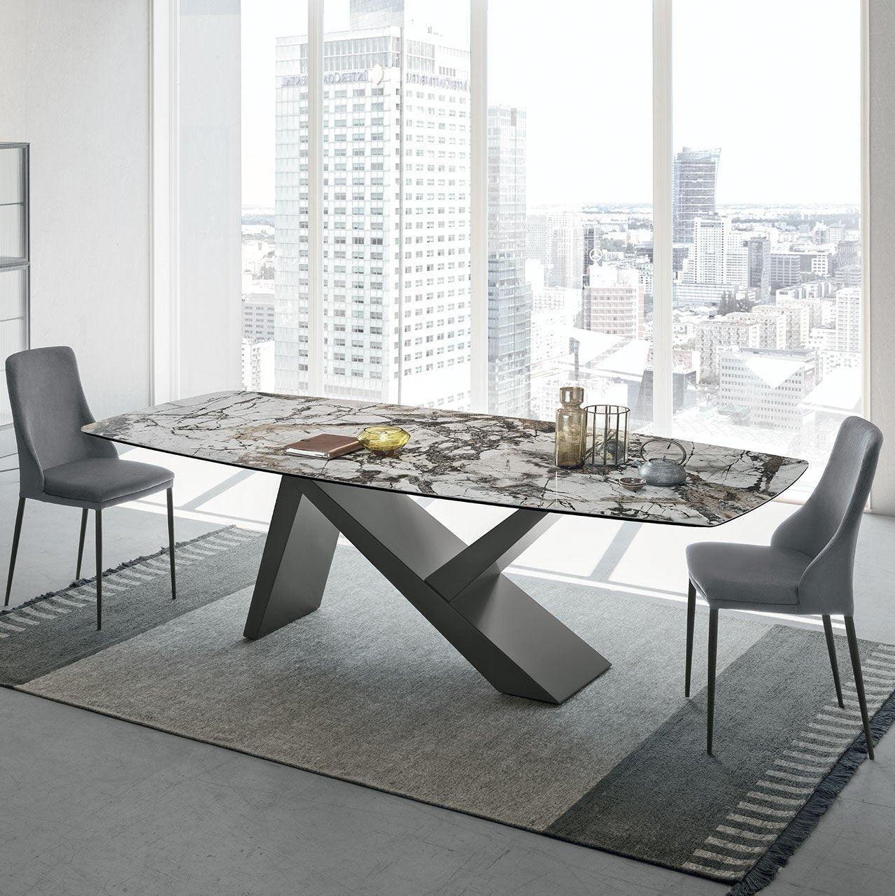 For those who want an impressive table. The exclusive, high-end table from Sedit Italia will be a lifelong piece of furniture in your home thanks to the materials used. Available in several sizes, fixed or extended, with a rectangular or rounded tabletop. The material and color of the tabletop, as well as the color of the legs, can be customized.