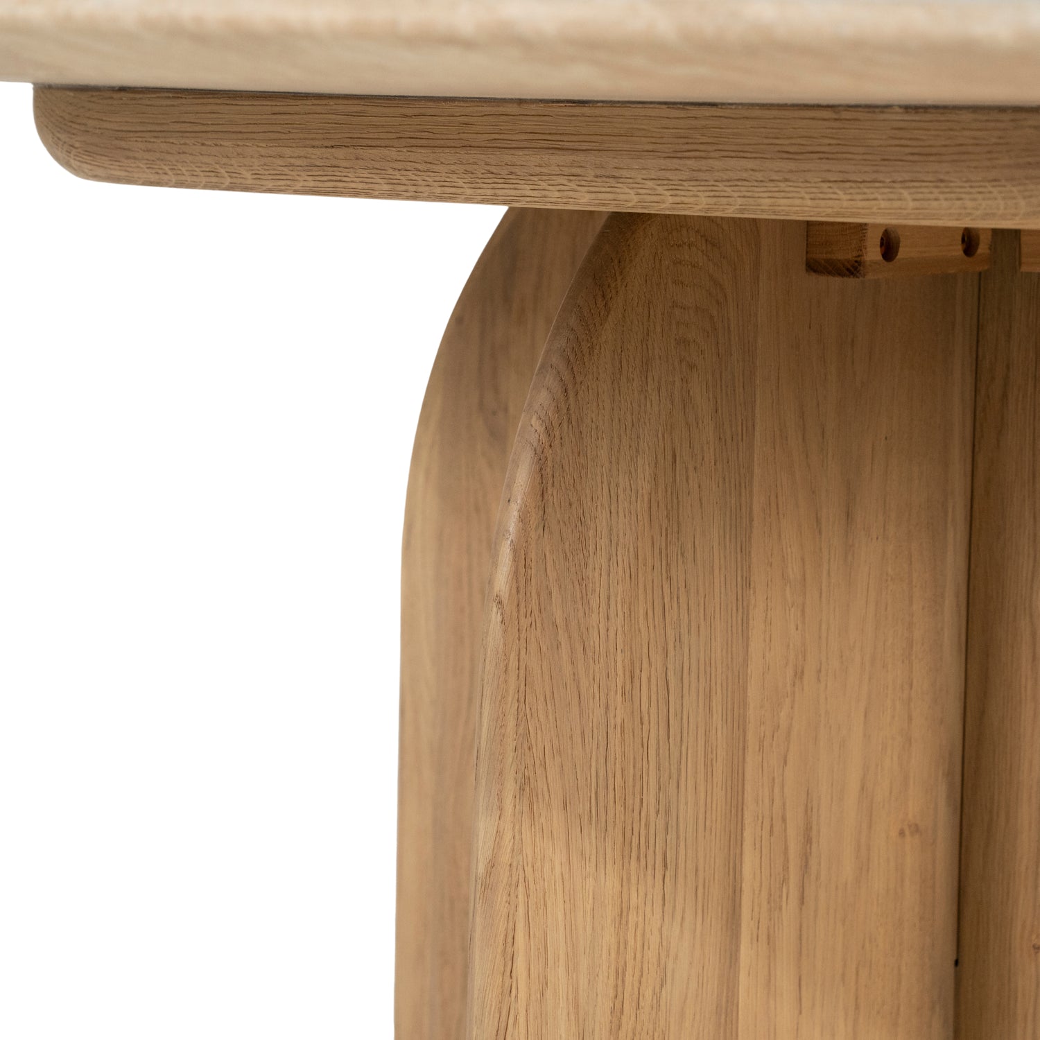 A Lova étkezőasztal a prémium anyaghasználat és a különleges geometria találkozása. A tekintélyes, 130 cm-es átmérőjű (négyzetes kerekített vagy kerek) asztallap valódi travertin kőből készült, amelynek természetes pórusa és lágy tónusa minden darabot egyedivé tesz. A stabilitásról a kefélt tölgyfa váz gondoskodik, amely a speciális felületkezelésnek köszönhetően kiemeli a fa természetes erezetét. A 75 cm-es magasság optimális kényelmet nyújt az étkezésekhez, a 75 kg-os teherbírás pedig garantálja a szerkezet masszivitását.