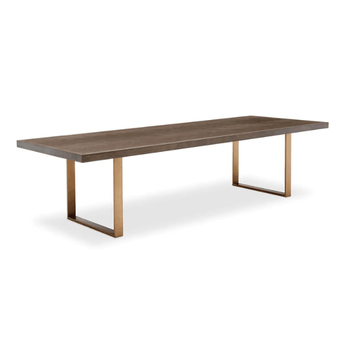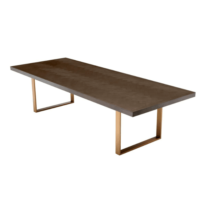 Melchior wooden dining table with brass legs 300x115 - Dark brown is backordered and will ship as soon as it is back in stock.