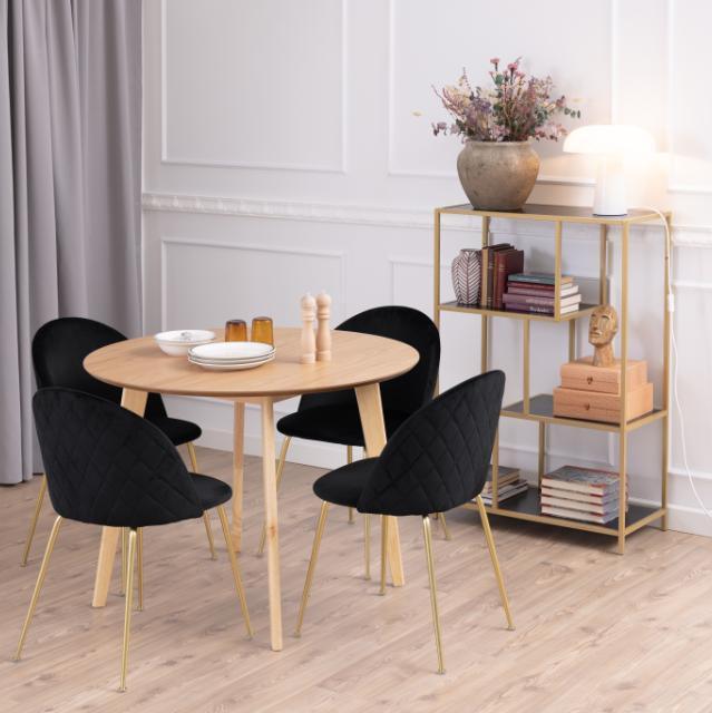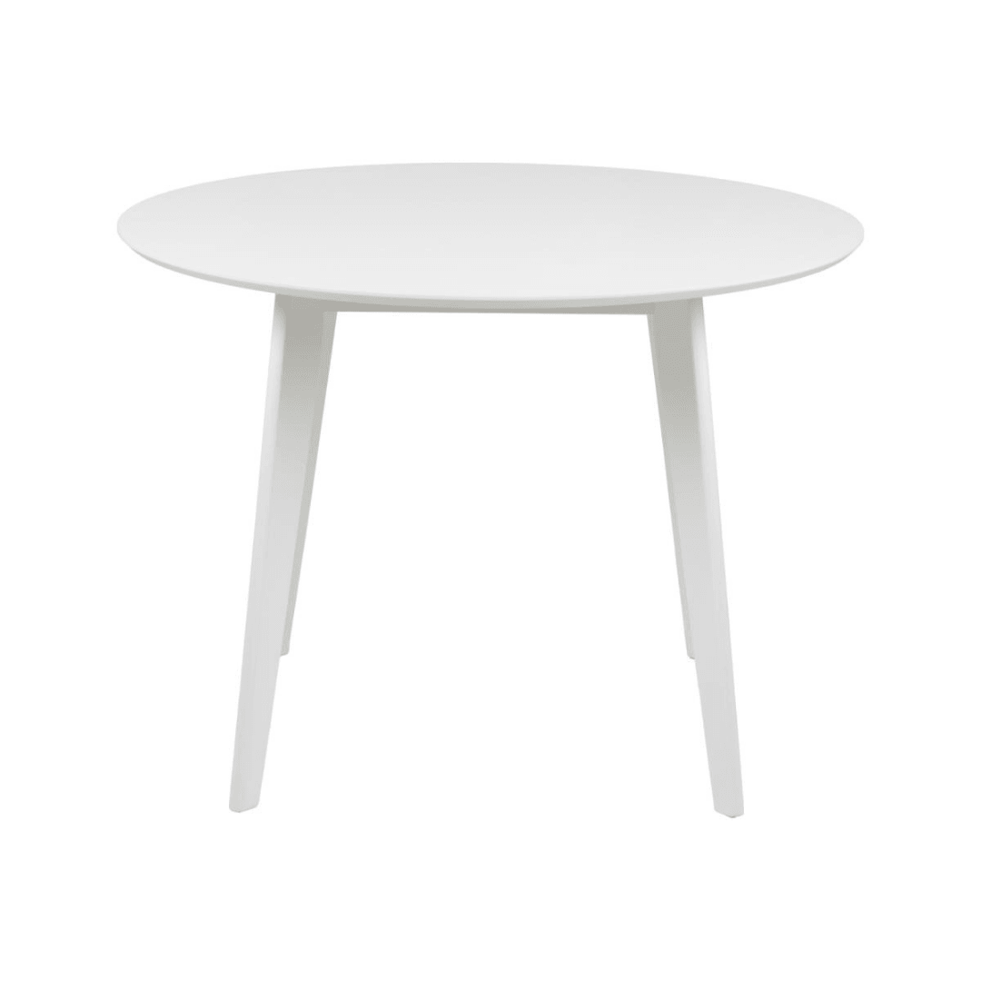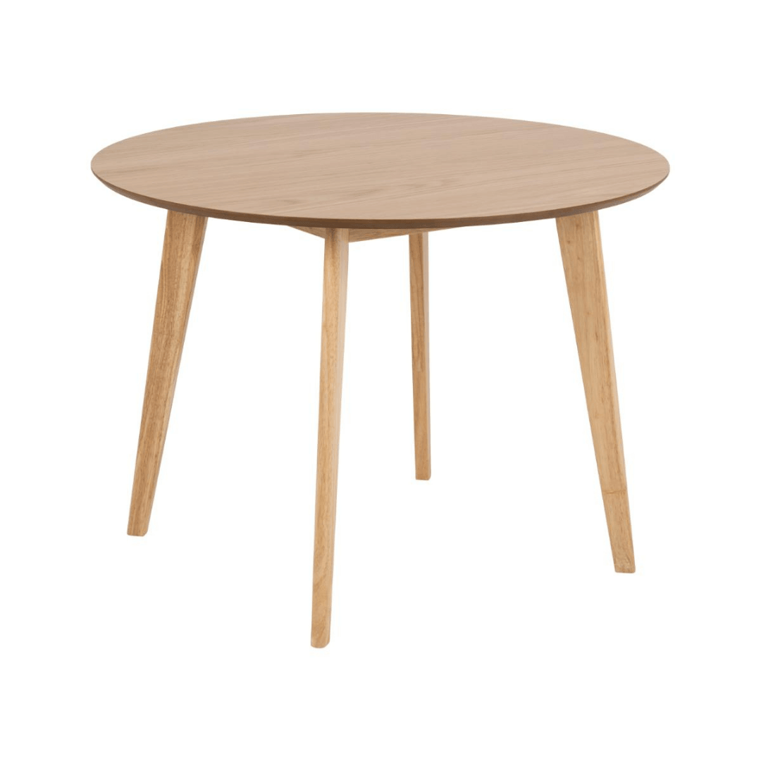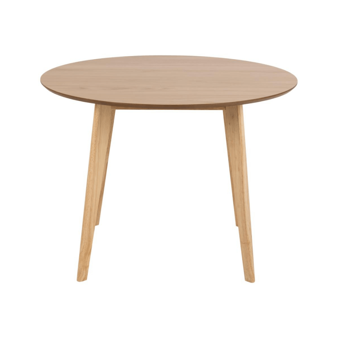 Make your room feel more spacious with the Roxby dining table, which has a round shape and a diameter of 105 cm, making it a great choice even for smaller spaces. It's easy to create a cozy atmosphere as everyone sits close to each other. With its natural oak, black or white finish, this table will fit well in any style of dining room or kitchen.