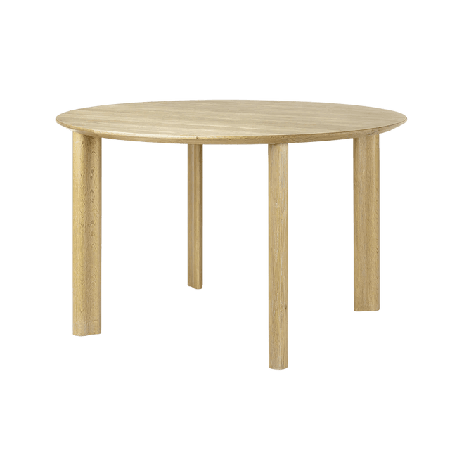 Available in oak and dark oak, 120 cm in diameter, perfect for four people.