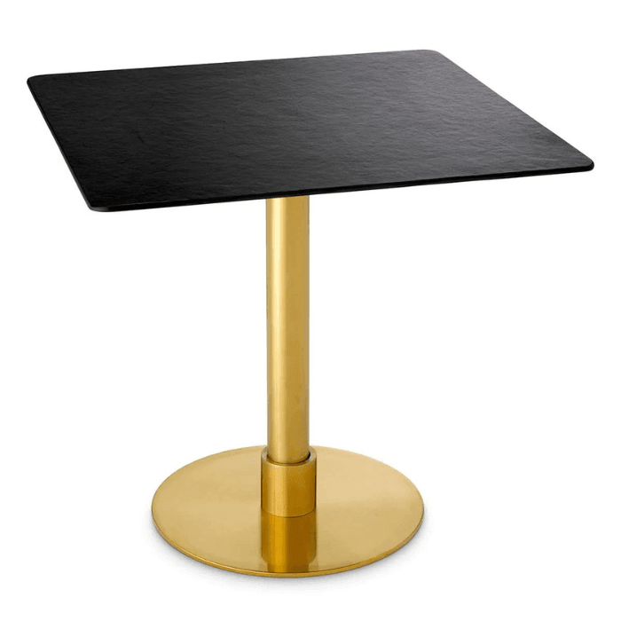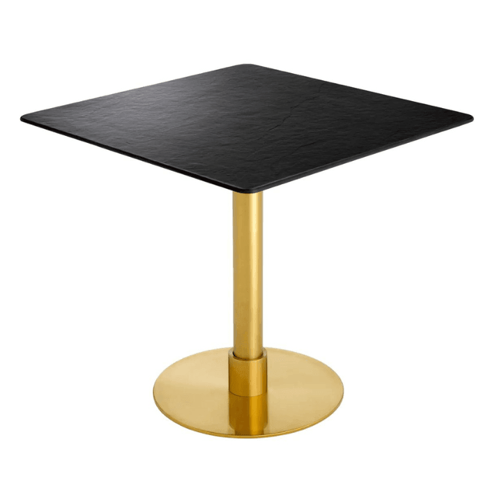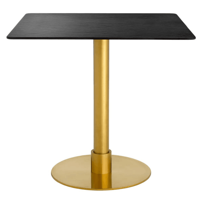 Immerse yourself in the sophisticated luxury of the Terzo ceramic dining table. The dining table exudes understated elegance with its polished brass-plated legs, while its ceramic tabletop, reminiscent of natural slate, creates a sense of opulence. The unique texture of the tabletop captivates the eye and invites you to touch it. The Terzo ceramic dining table offers an intimate dining experience thanks to its design.