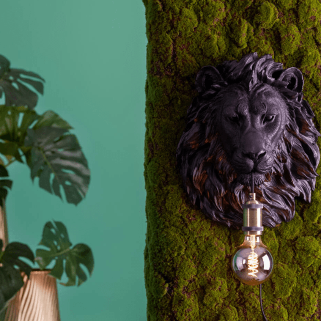 The extravagant Lion wall lamp brings character to any room. If you are looking for a unique, natural atmosphere, or if lions or the inhabitants of the African wilderness are your favorites, then you have found the perfect wall lamp. Its resin silhouette and lifelike details are guaranteed to steal the show. Compatible with an E27 bulb, which is not included.